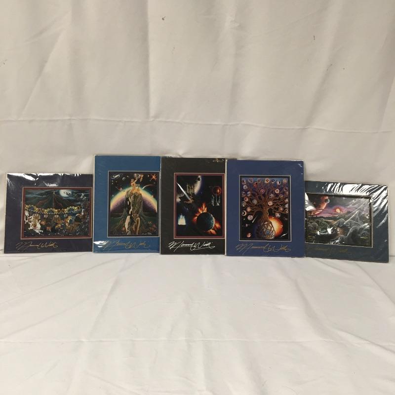 Five Markus Willis prints with signature on matting. Matting measures 8” x 10”. All still in cellophane with stamps on back of cardboard.