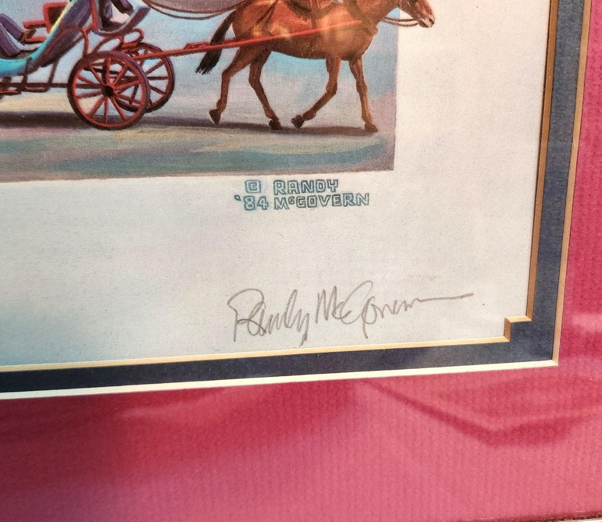 Framed New Orleans '84 Poster by artist Randy McGovern, pencil signed, 10/100 (Artist's Proof), double mat. Features an image of Pete, along with other iconic NOLA scenes. Measures 28" x 22".