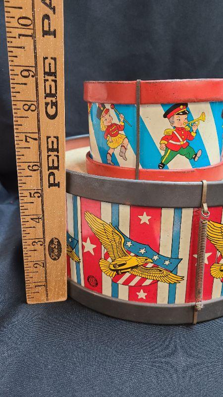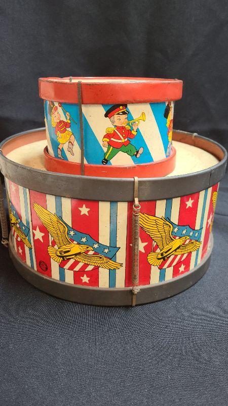 Vintage lot of Ohio Art Metal Toy Drums As-Is. Please see all pictures for condition of the items listed and what is included in the lot. Pictures will also show any measurements if taken and is the best representation of the items. Thank you for looking and have fun bidding! We appreciate Treasure Hunters!