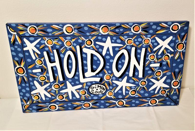 HOLD ON original painting by Simon of New Orleans - oil on board. Info on reverse. Measures 21.75" x 12.25". Good condition.