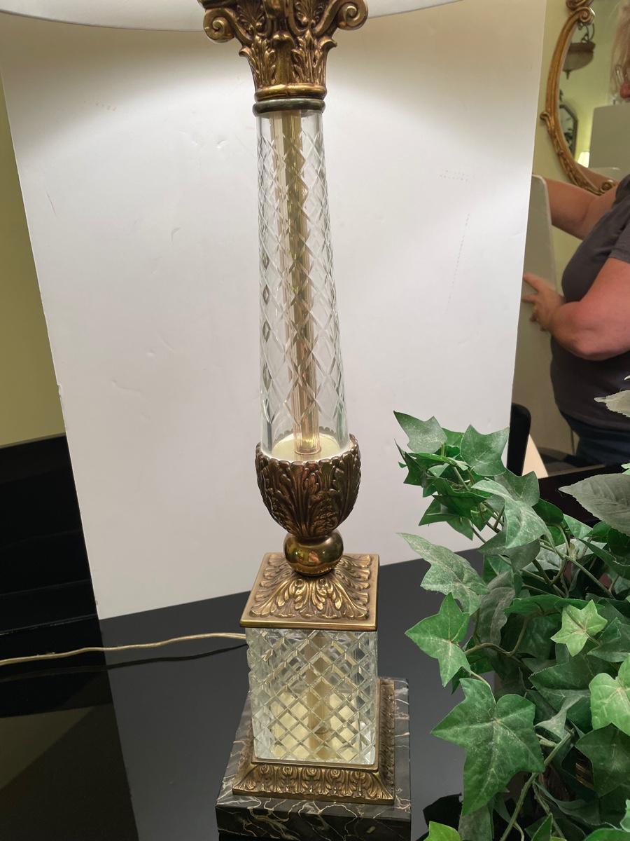 Lot 30 Pair of Brass and Glass Lamps with Silk Arrangement