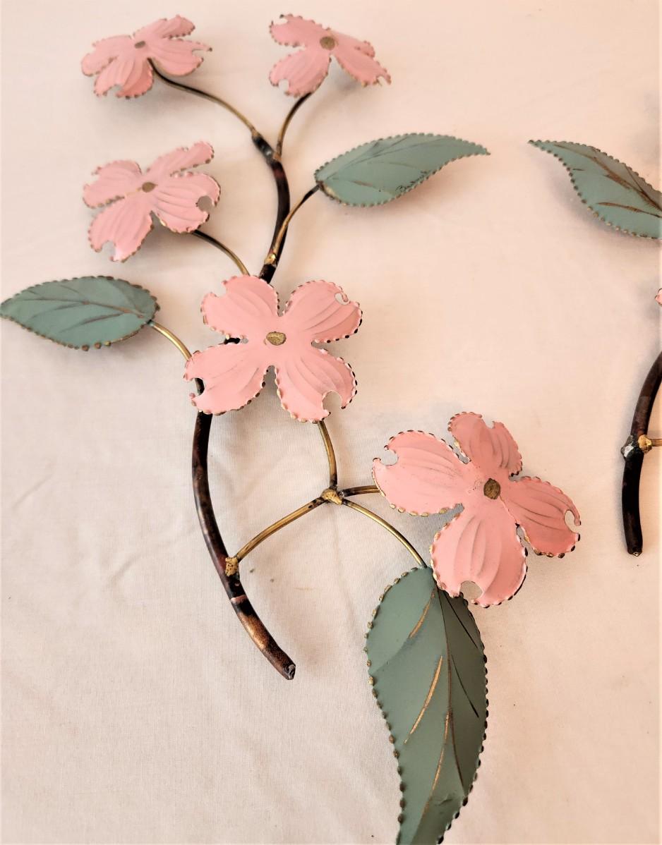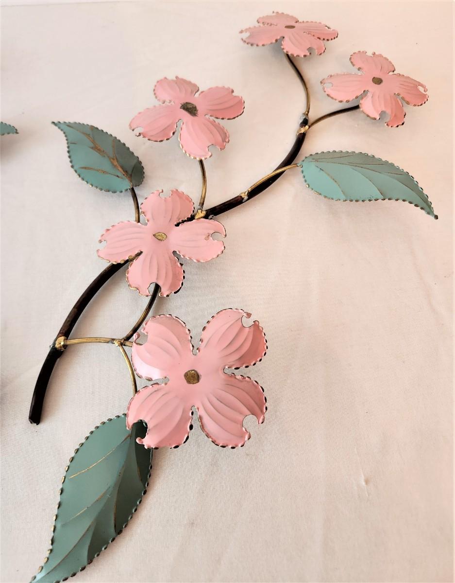 By noted MidCentury artist Ron Bertocchi - Nice pair of pink Dogwood MidCentury Modern, fire painted on copper wall hangings, signed "Bertocchi." Each 18" tall. These are very scarce.