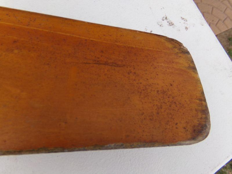 WOODEN AERIAL PROPELLER MEASURES 30" AND HAS SOME DAMAGE TO THE ENDS (SEE PICS)