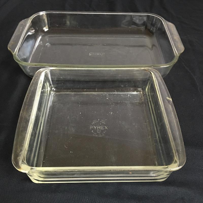 Pyrex and more. Lot includes two casserole dishes, two bread dishes, two round dishes and three small bowls all by Pyrex. Also includes small unmarked dish with lid unmarked pie dish and a small arcuisine bowl. Small casserole dish has chip in handle. Largest casserole dish measures 9.5” x 15.25”.