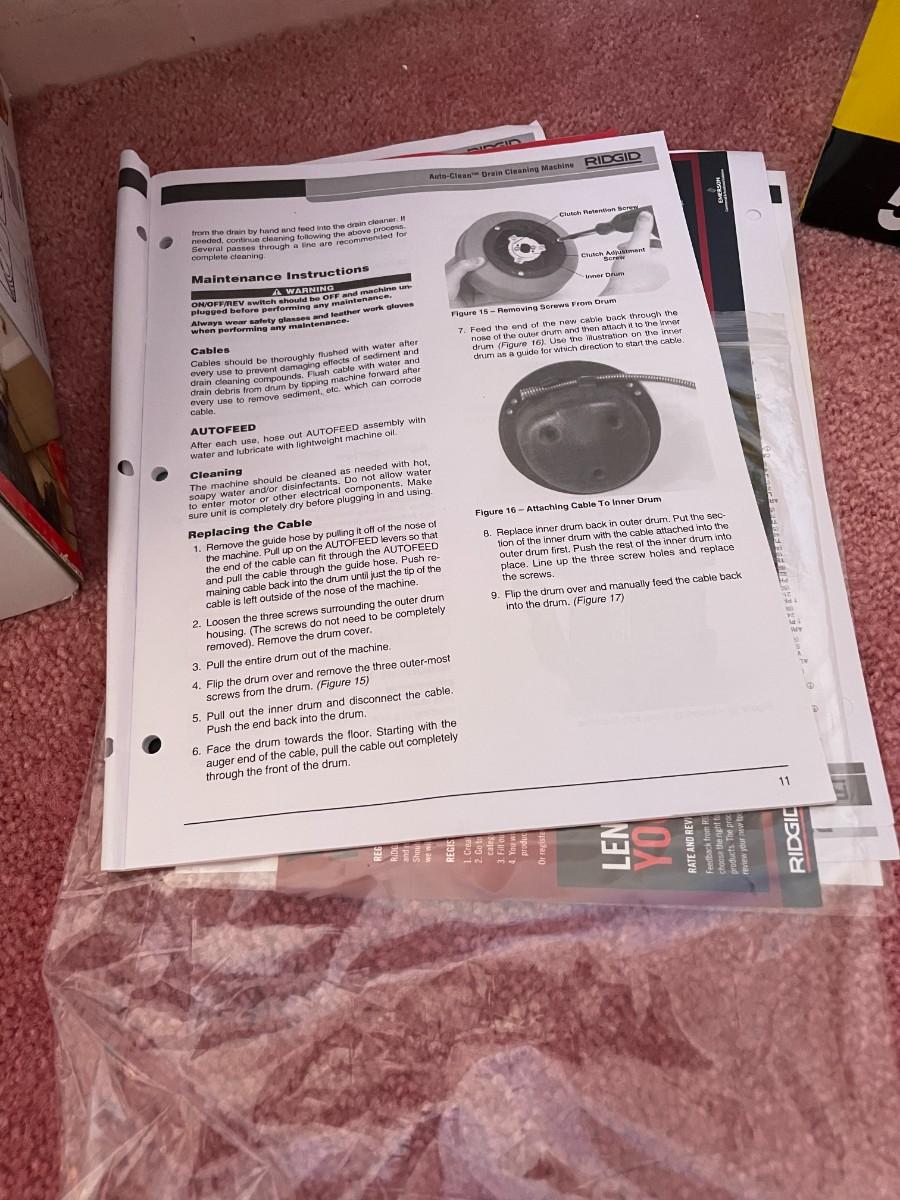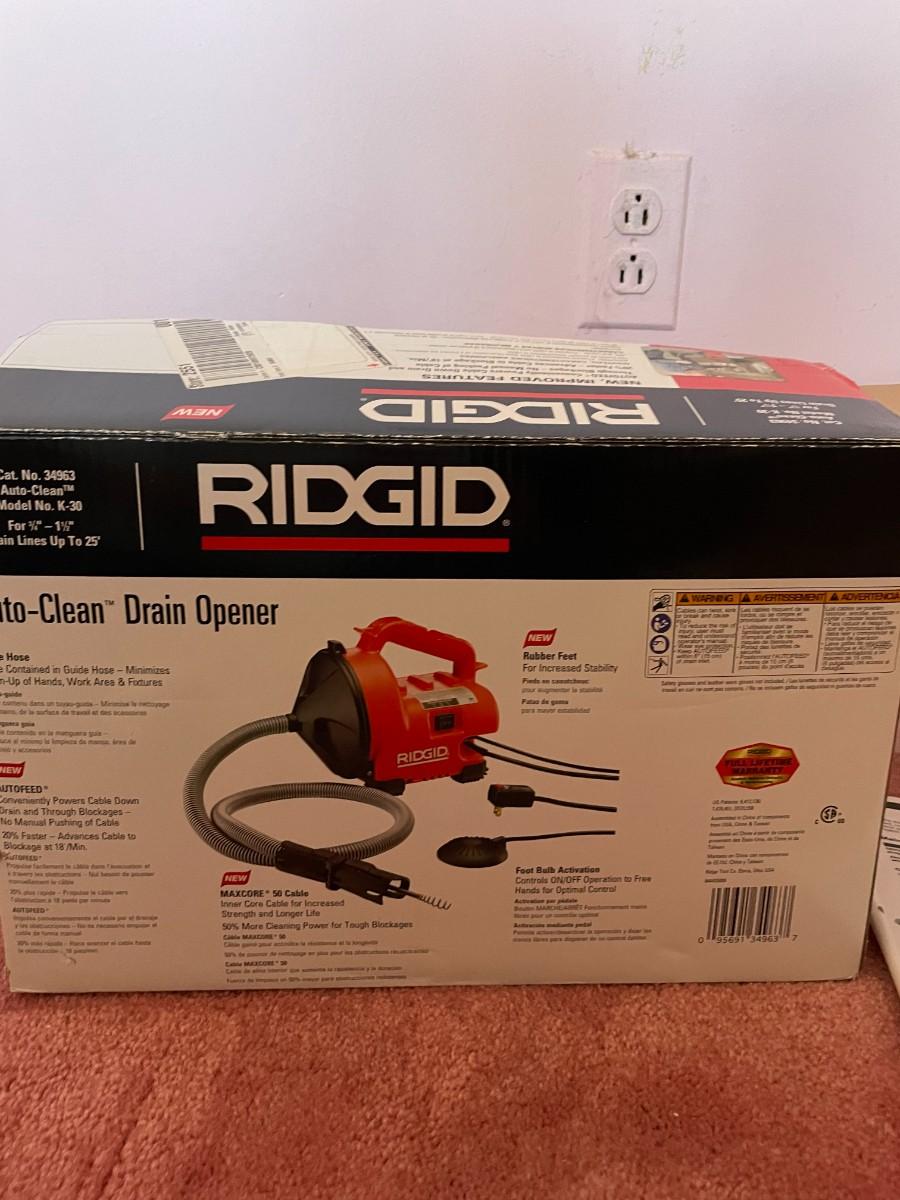 Lot 30- Rigid auto clean drain opener brand new with manual