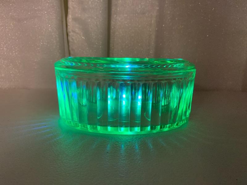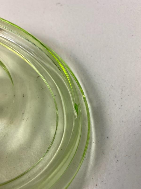 Lot# 130 S Uranium Green Vaseline Depression Glass Covered Trinket Candy Dish