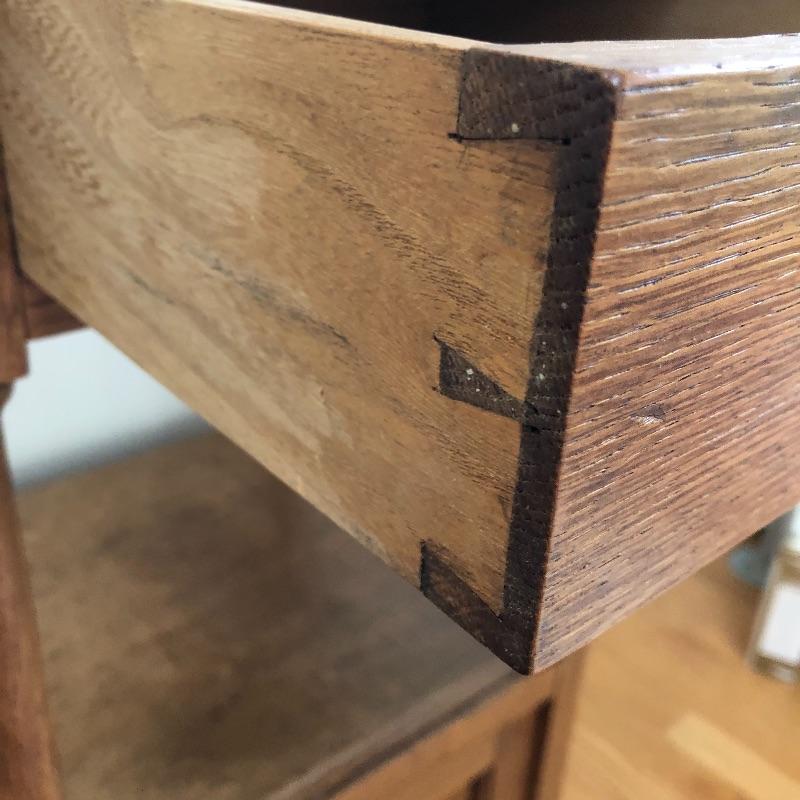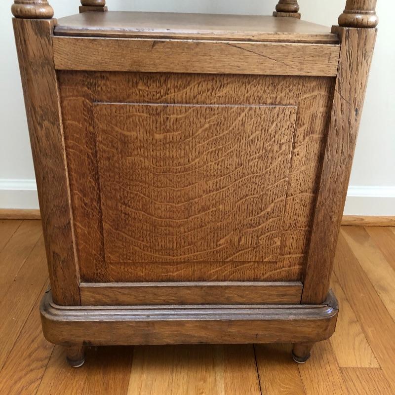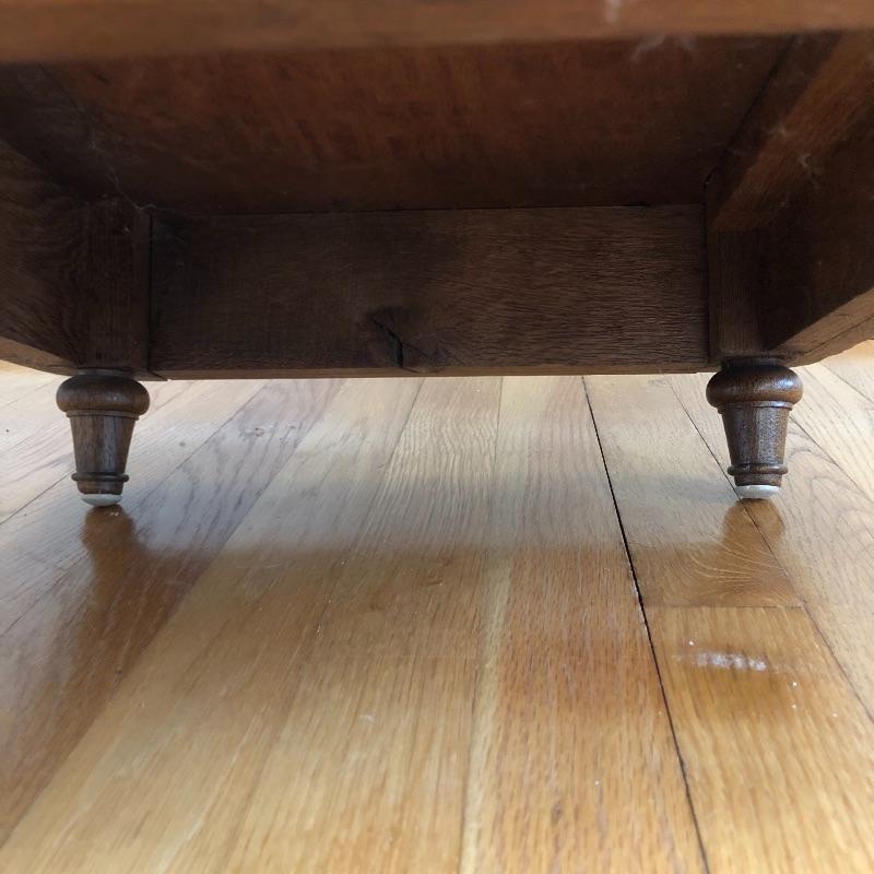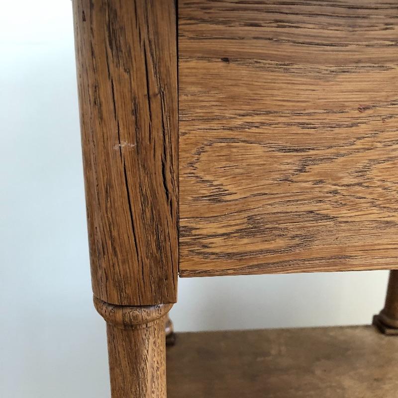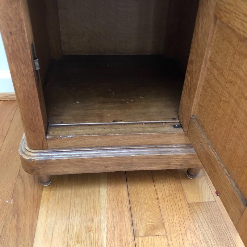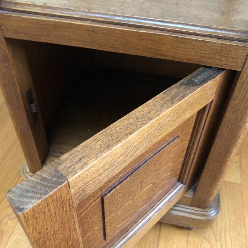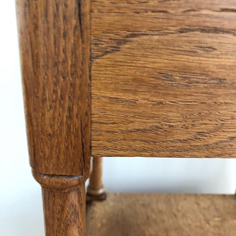 This stunning marble topped side table will look great in your home. This table has a marble top with a dovetailed drawer and a shelf and cabinet underneath. This table is in great shape with some nicks and some splitting on the sides, see pictures. Table measures 15.25” x 15.25” x 32.25”.