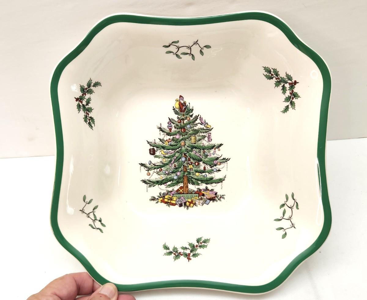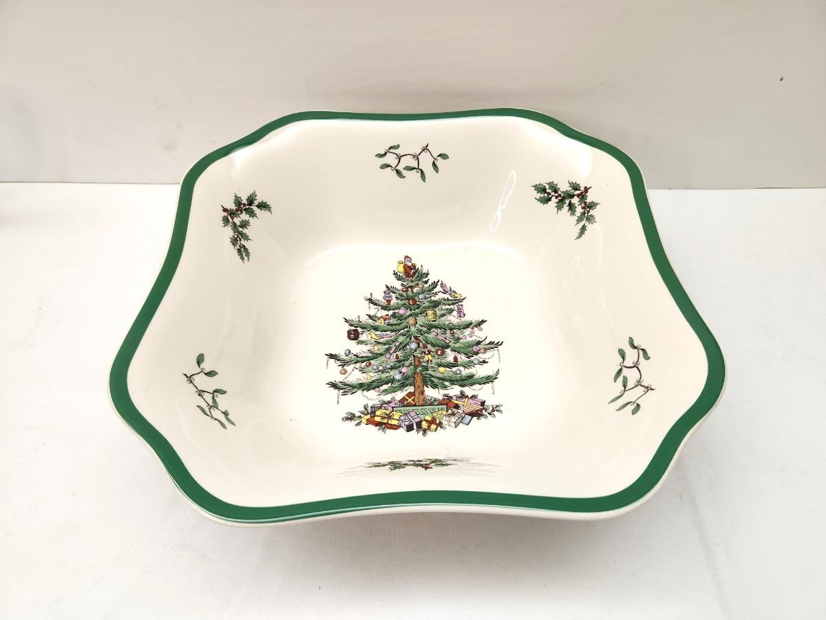 Nice Spode "Christmas Tree" salad/serving bowl - 9" square. Good condition.