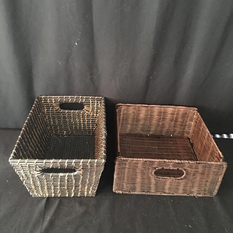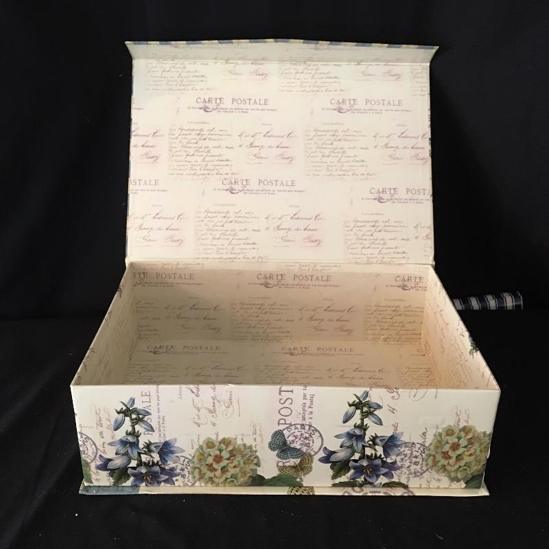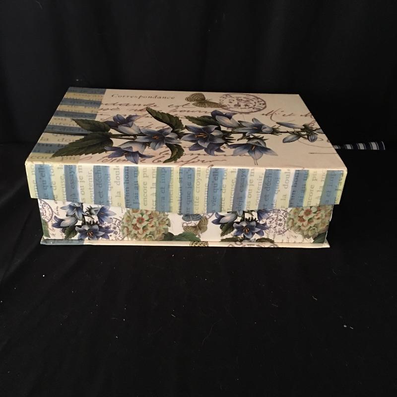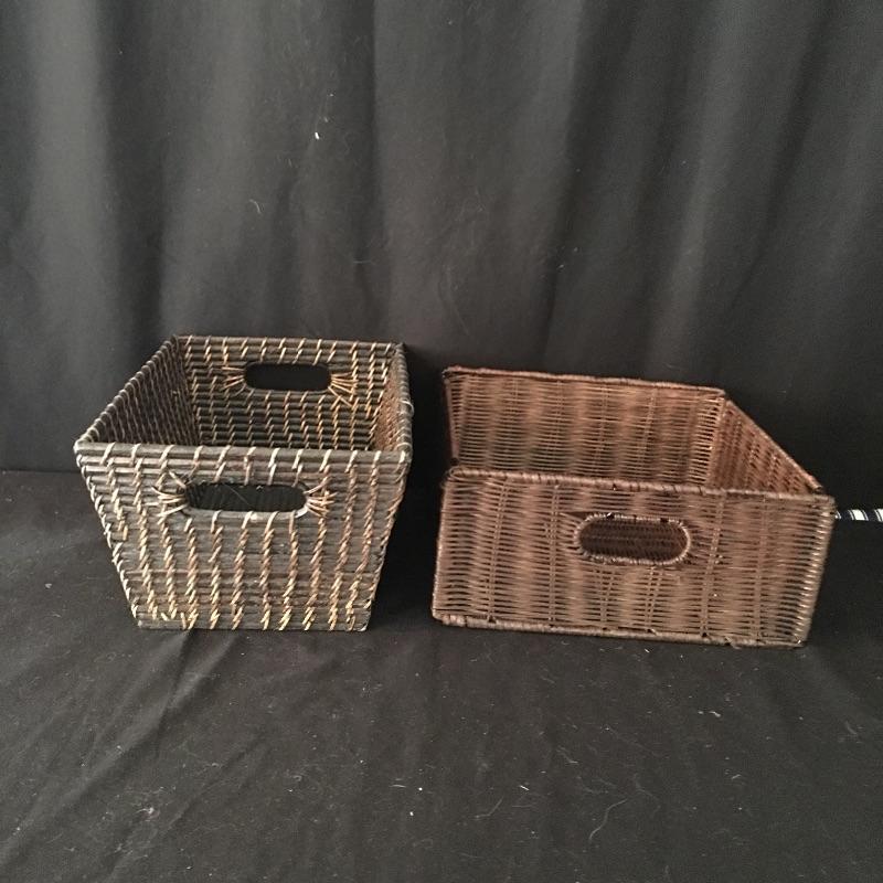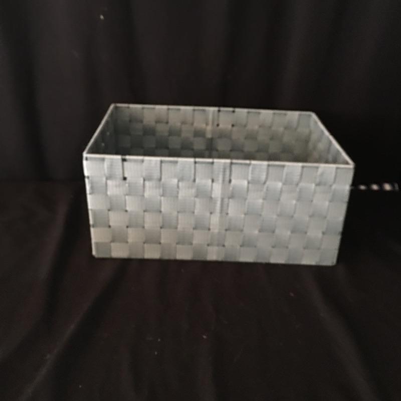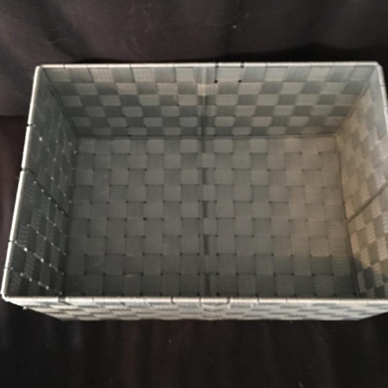 This selection of over ten storage includes three woven boxes, four woven canvas boxes, three cream colored boxes with matching inside and a floral design box
