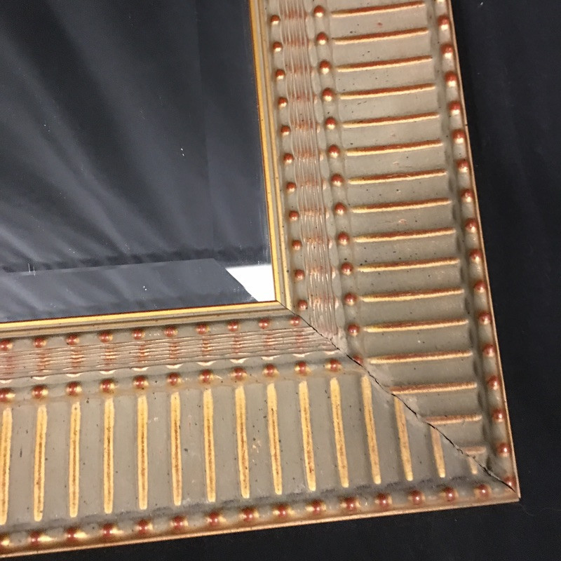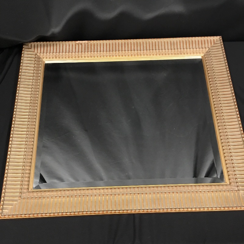 Trio of stylish mirrors with gold colored edges in a nice variety of finishes. You could see yourself in this lot. Largest mirror measures 21” x 24.75” x 1.25”.