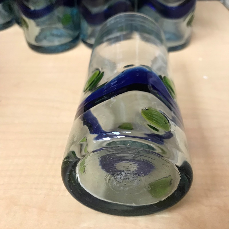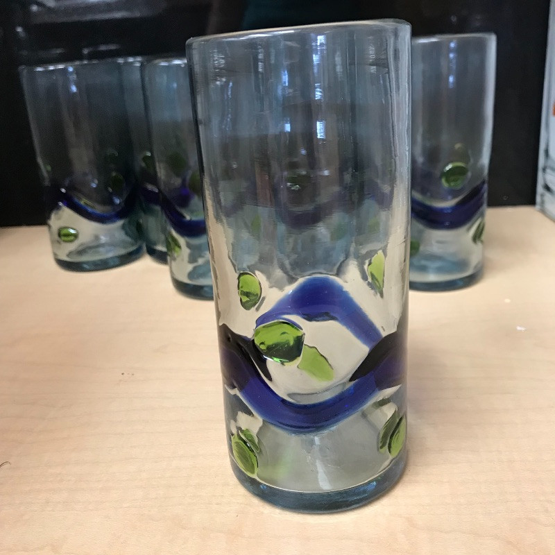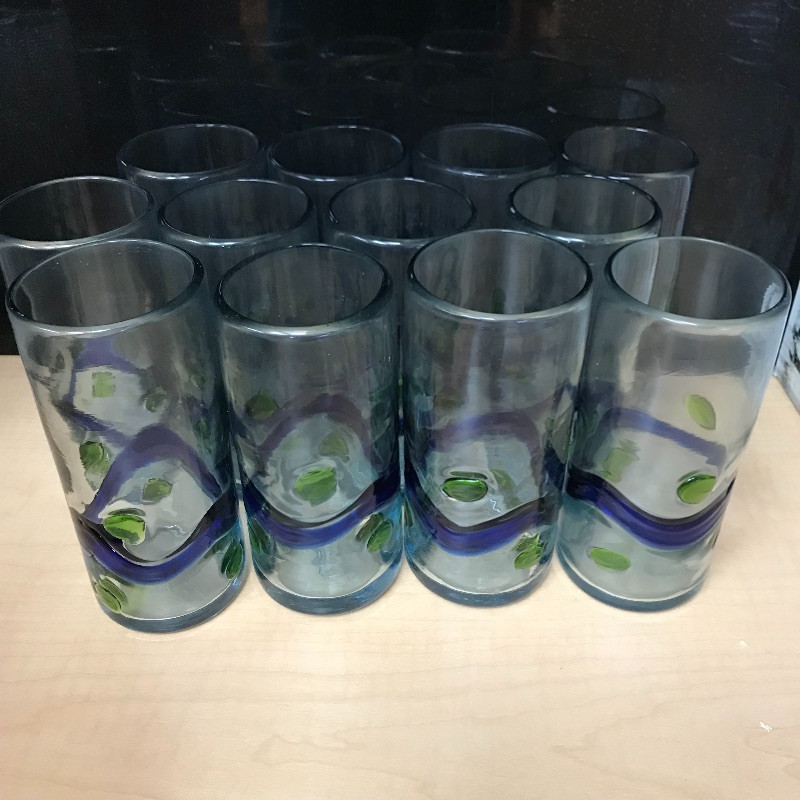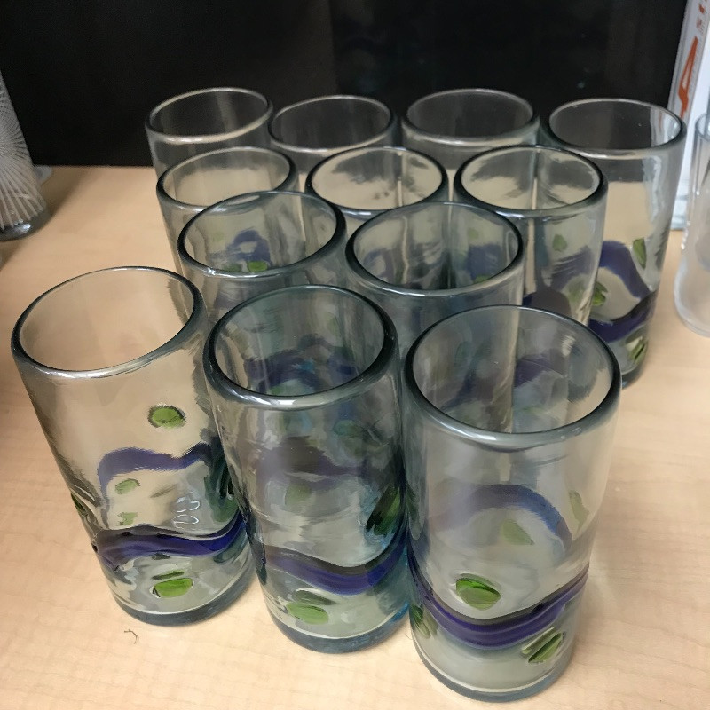 Set of twelve perfect for any beverage glasses! Frozen concoctions, fruity mocktail/cocktails and even good old water, these lovely glasses appear to be hand-blown and vary very slightly in height, but they are approximately 6”.