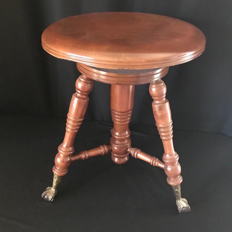 This gorgeous stool has a height-ajustable turning top and claw feet made of metal and glass balls. Markings under top read “TONK CHICAGO & NEW YORK.” Top is approx. 14.5” in diameter. See pics. Local pickup only.
