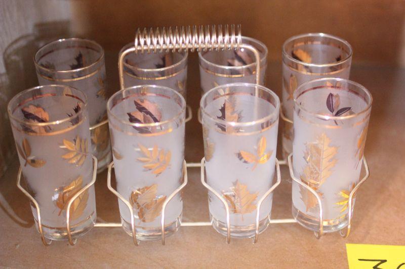 Lot 30 Vintage 8 Leaf Glasses w/ Carrier