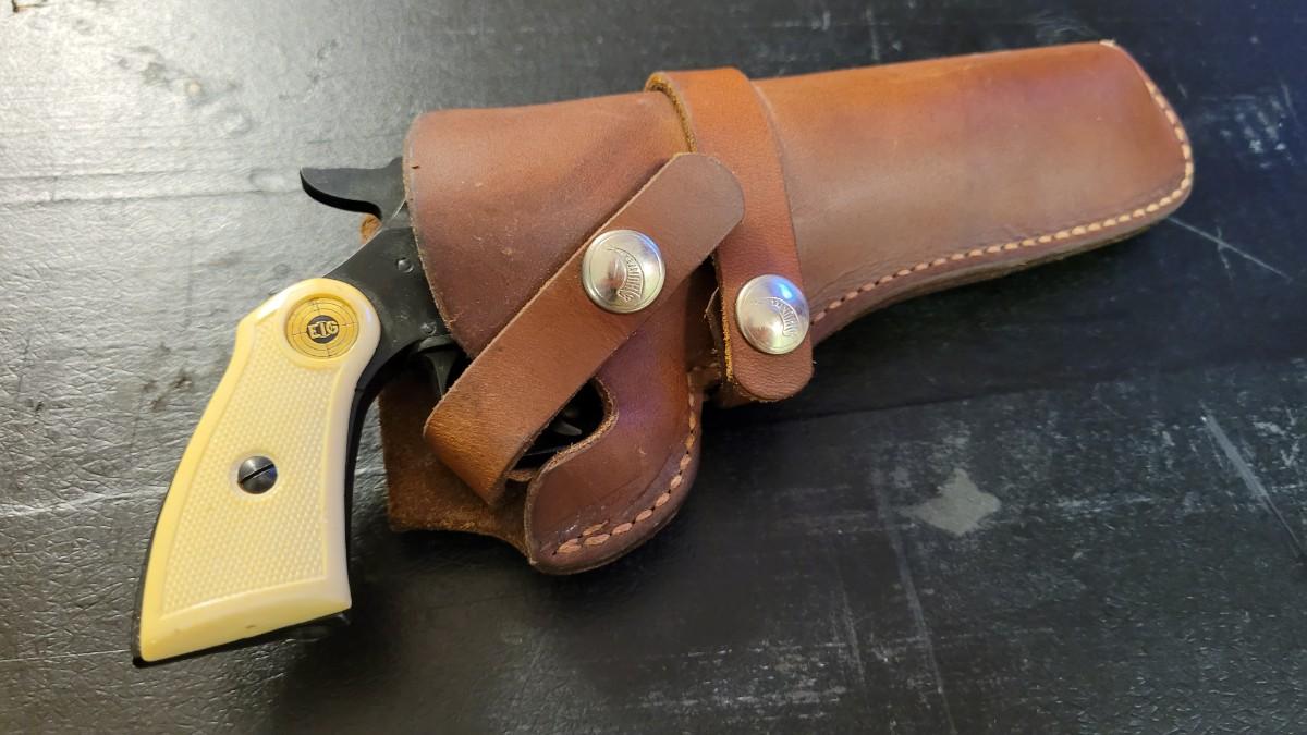Lot 30: Vintage EIG .22 Short Concealed Carry Revolver w/ HUNTERS Leather Holster