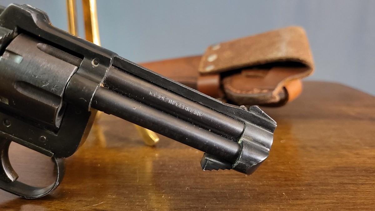 n 1950, Herbert Schmidt got the license to produce starting pistols and blank-firers, which were then made in a rented location. The first model was a single-shot alarm gun (for yachting purposes). In 1951, the production hall was completed, and the model range had been increased, to include a double-action revolver in .22 caliber. The production of own cartridges began at the same time. In 1959, a single-action revolver in the Western style, the 120, 121, 121 a and the 121 S, were born; they were first made in .22 magnum.