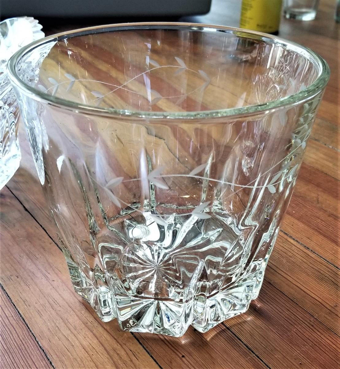 Lot #30  Vintage Etched Glass Ice Bucket & Crystal Bowl