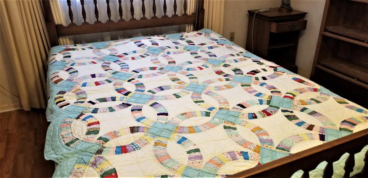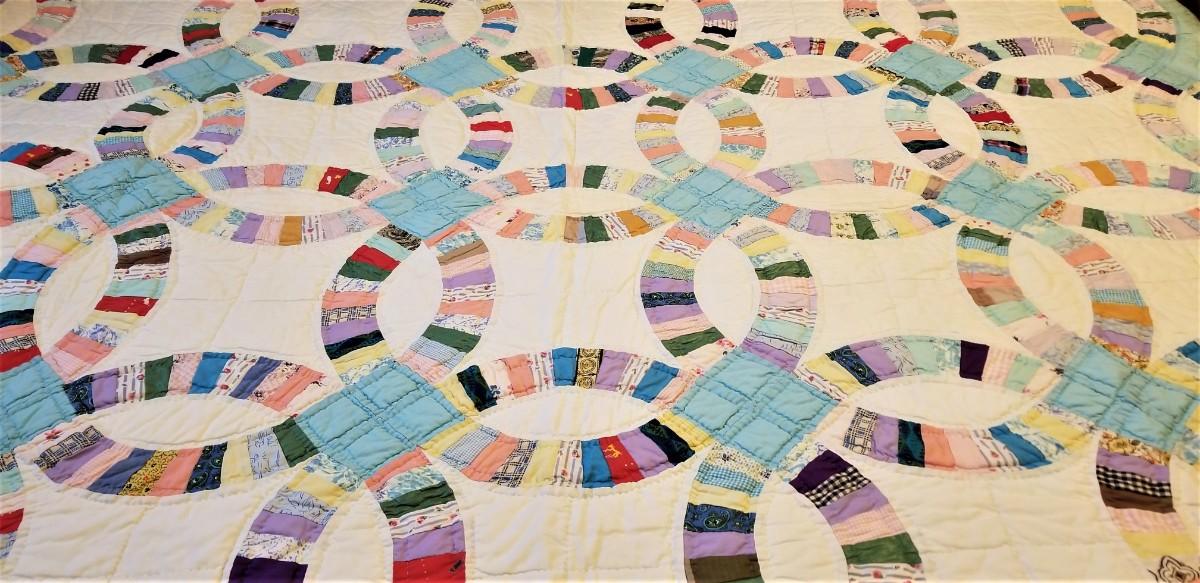 Lot #30 Vintage Handsewn Quilt - Wedding Ring pattern