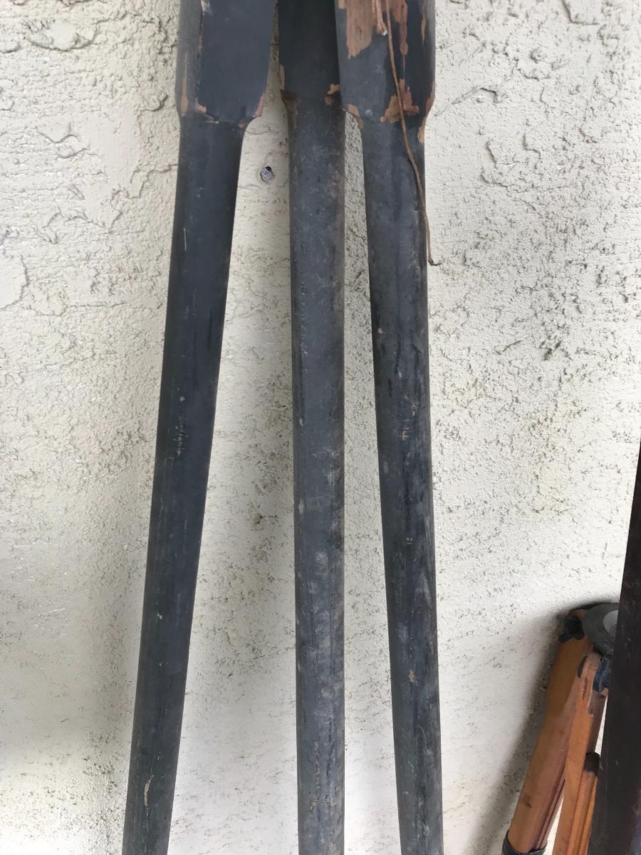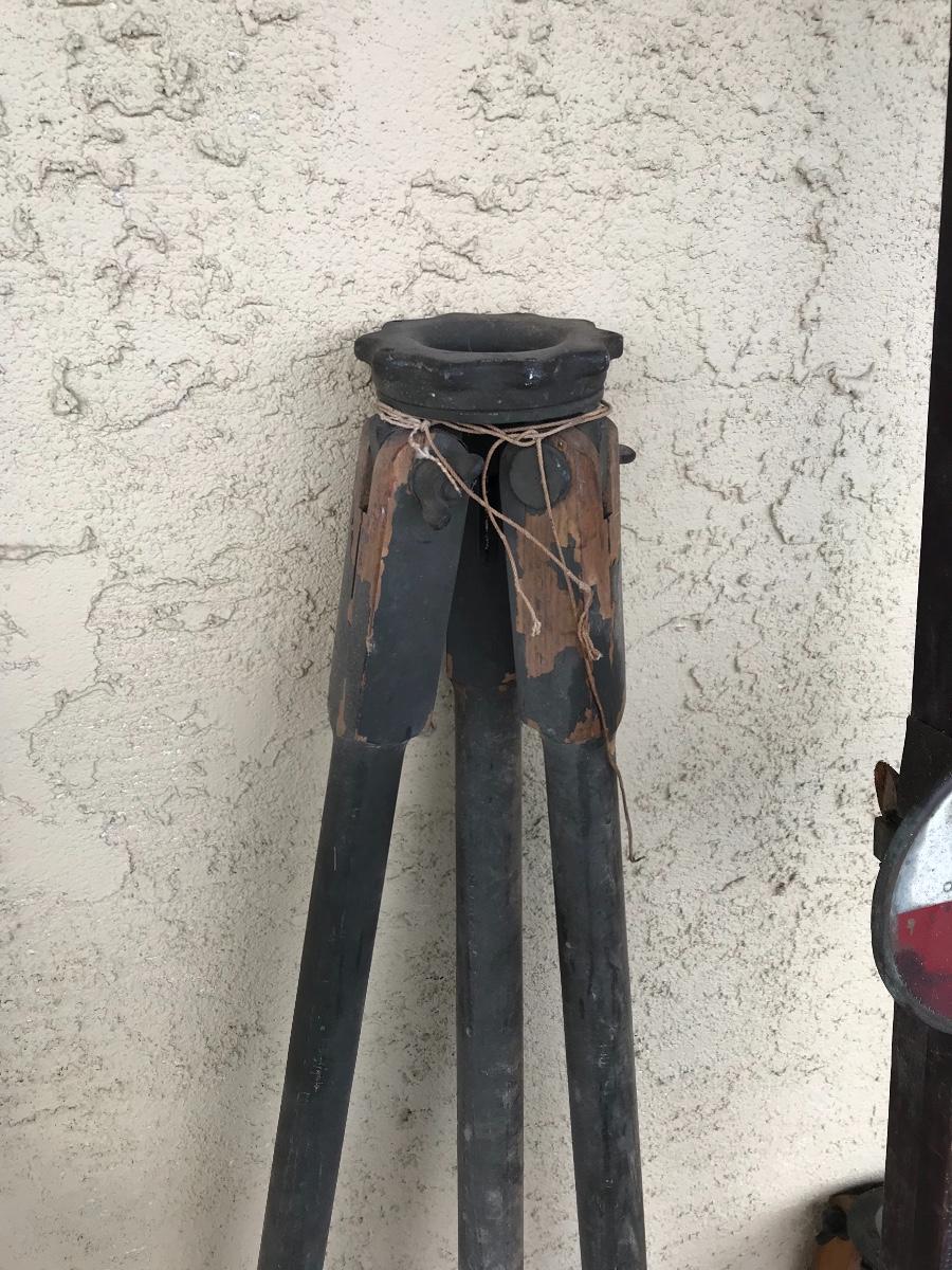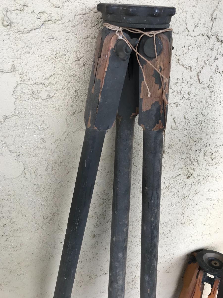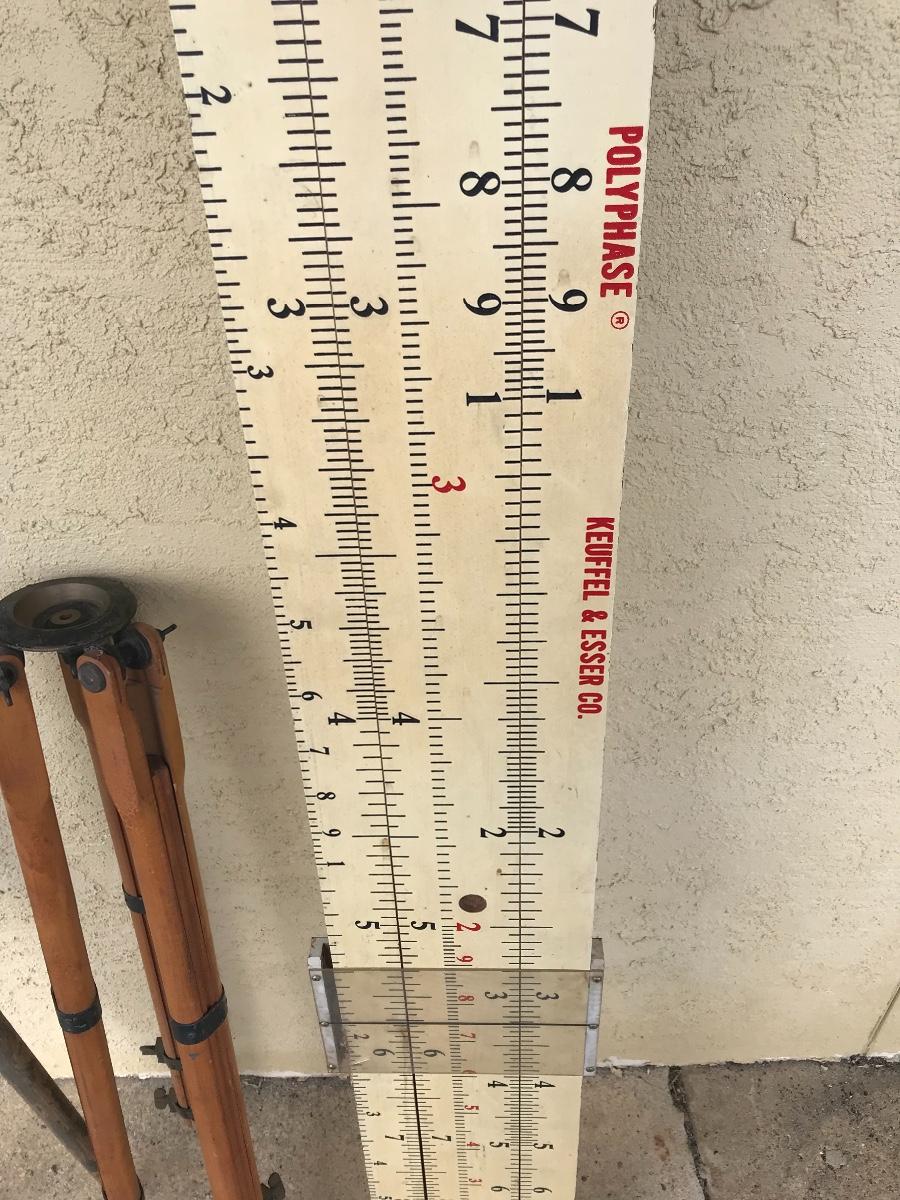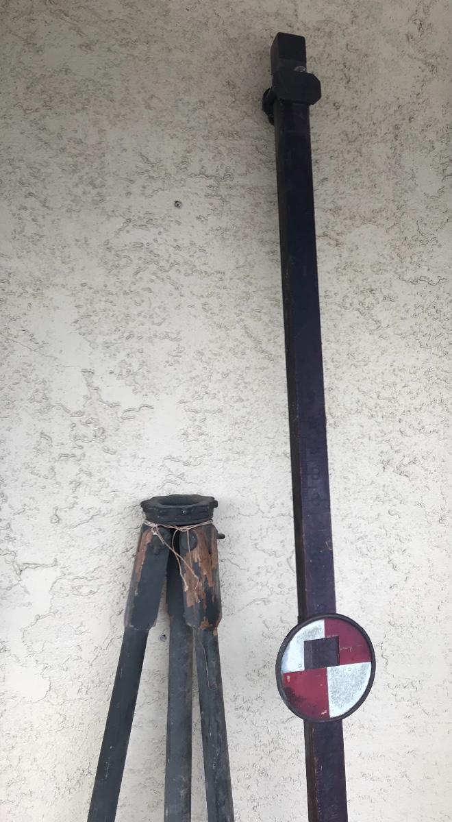 Lot of vintage survey equipment including two tripods for transits (tripods only) and two measuring rods/poles. The pictures show condition, measurements if taken, and what is included in the lot. Due to the large amount that we photograph and the time frame, we are not always able to take measurements. All items unless noted, are pre-owned and have been used. If you purchased furniture, you must bring help. We do not allow one person to carry large furniture out on their own. Bring help, tools and a truck for the safety of our client’s homes, and your personal safety. Company policy. Thank you.