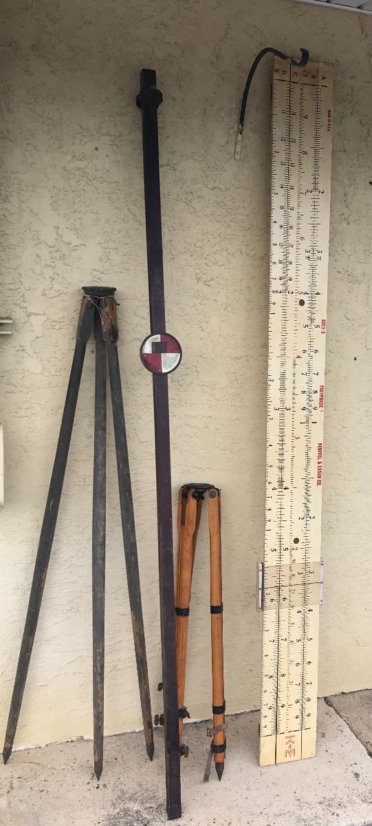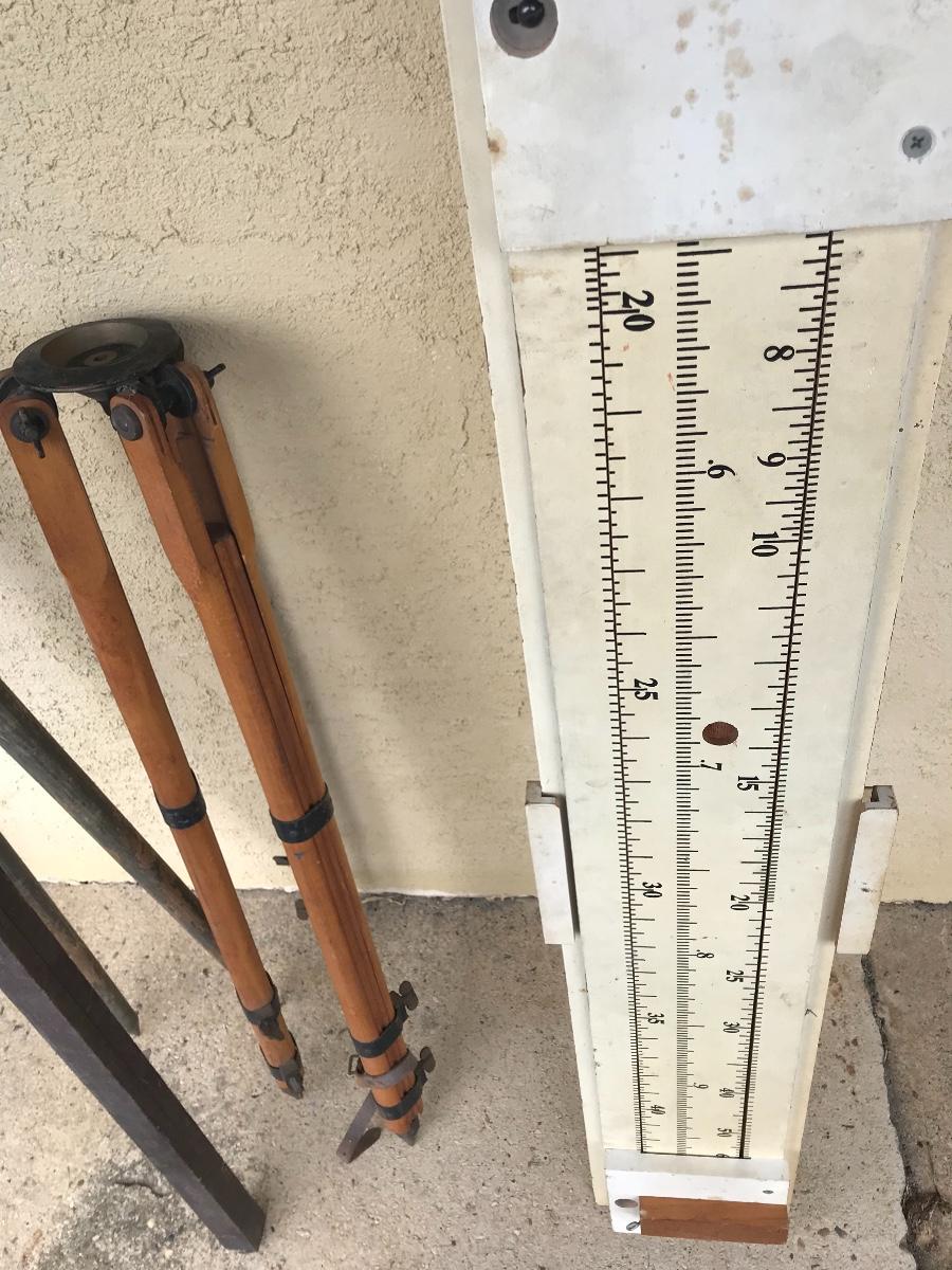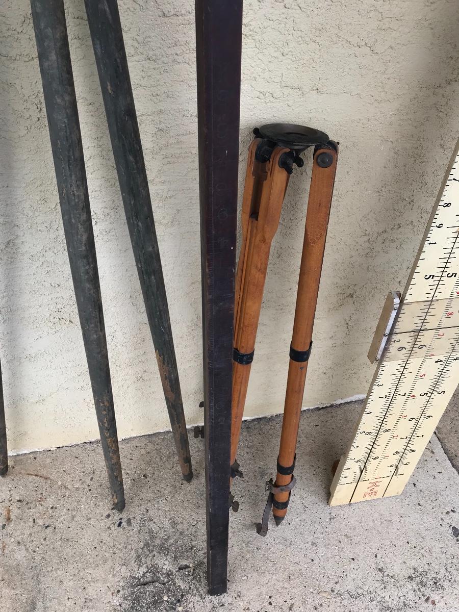 Lot 30: Vintage Survey Equipment - Tripods, Measuring Rods