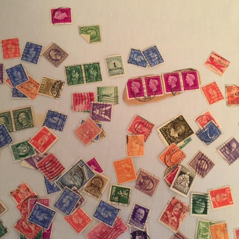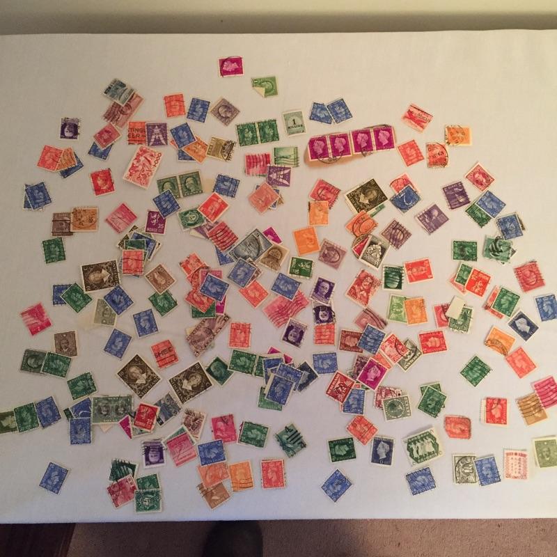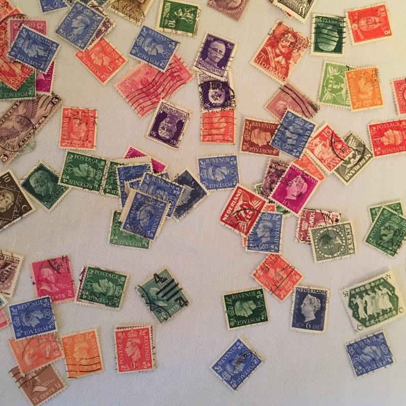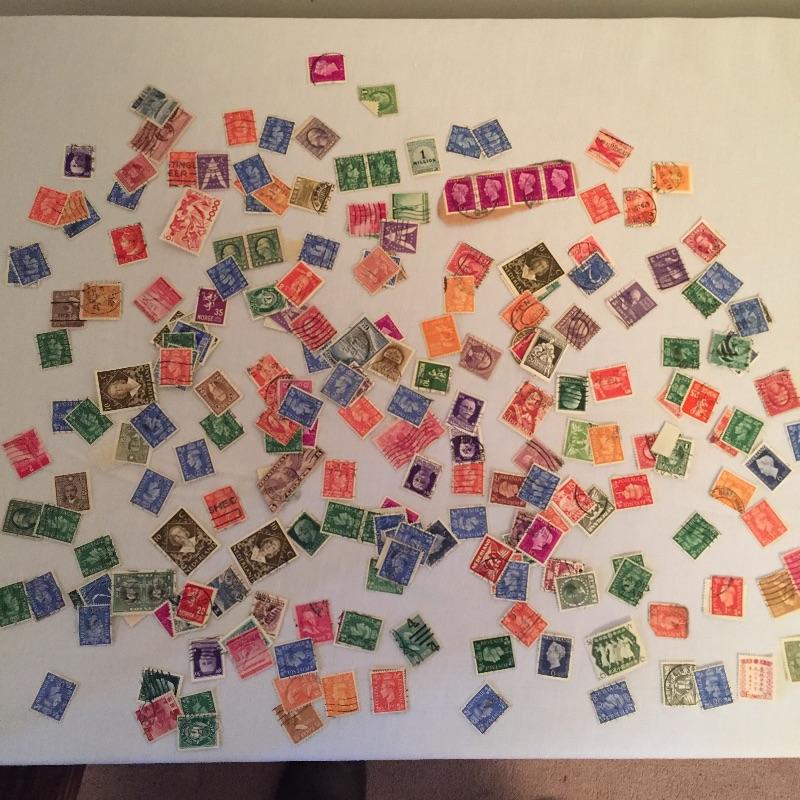 Array of used Stamps foreign and domestic of varying value.