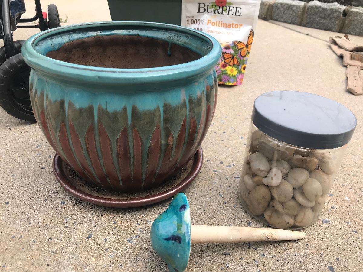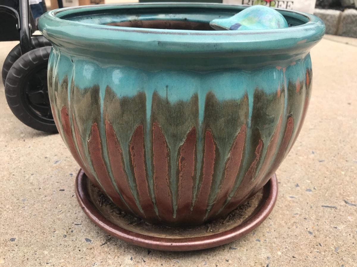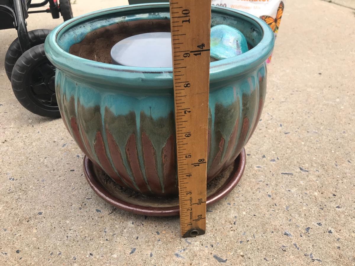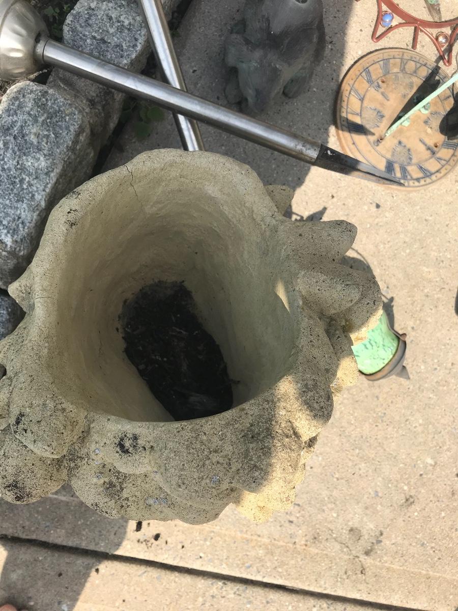 Pottery flower pots, star bird house, solar lanterns, umbrella stand, sundial, composite goddess head, stepping stone, rabbit water sprinkler, and more. The mushroom solar light has been removed. Please see all pictures for content of the lot, condition of the lot, and measurements if taken. Pictures are the best representation of the items listed and items are untested unless indicated in description. Thank you for looking and have fun bidding!