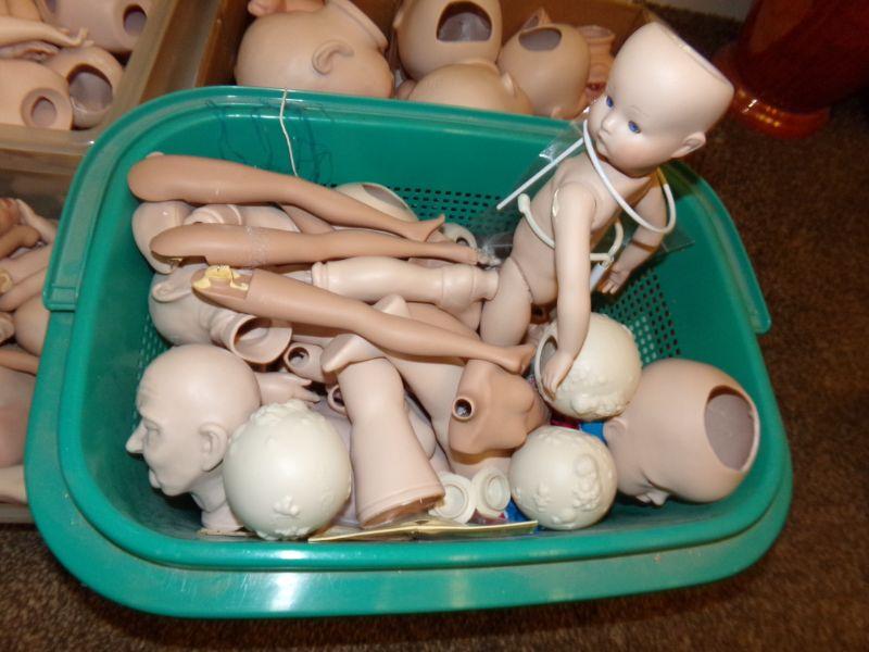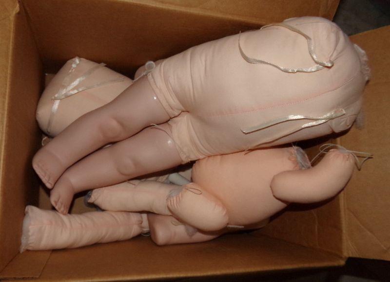 2 BOXES OF DOLL BODY PARTS. THE 1ST BOX HAS SOFT BODY WITH PORCELAIN LEGS