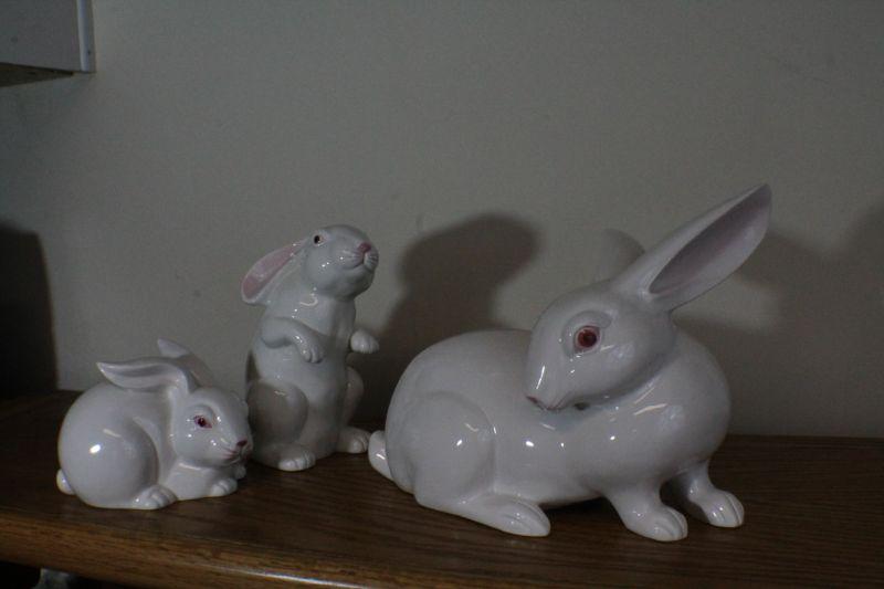 LOT #300: Set of (3) Fitz and Floyd™ Ceramic White Easter Bunnies Home Deco