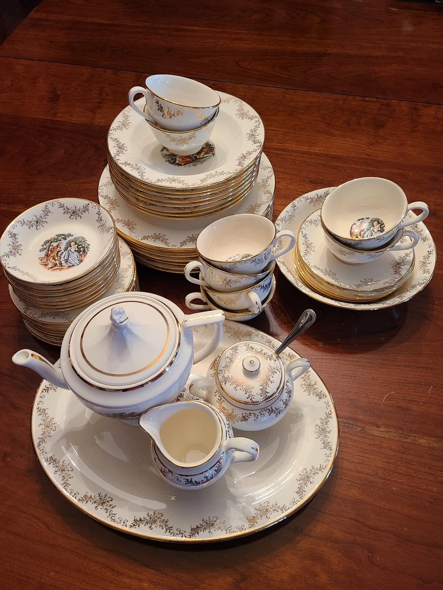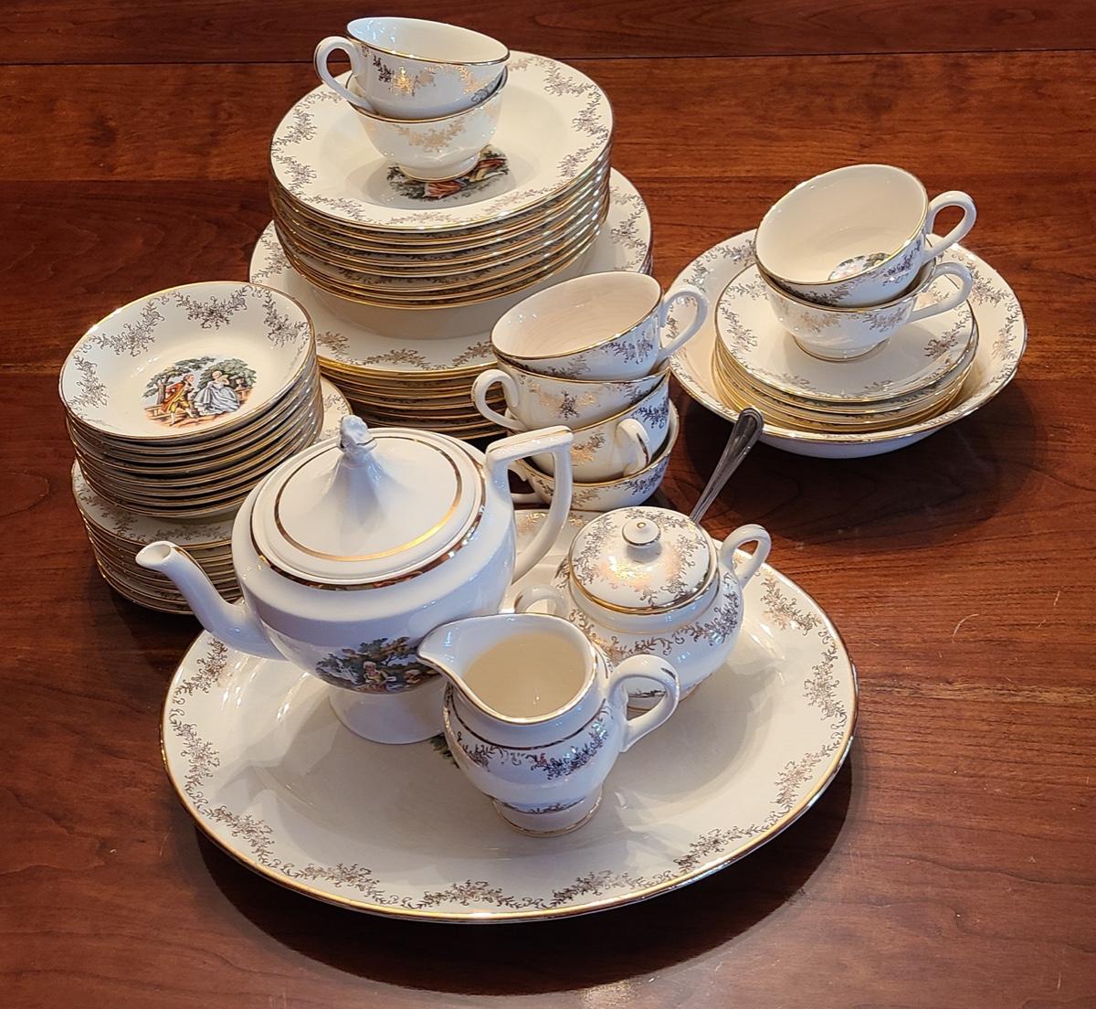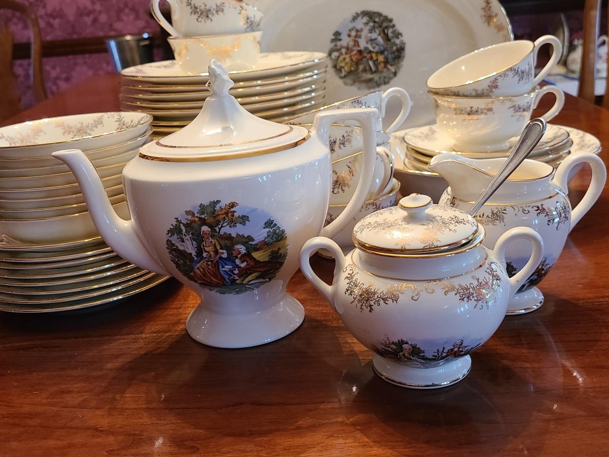 The gold on this set just shines, while this is vintage/antique it still looks new! Amazing set! Please see all pictures as they are the best representation of the items in the lot, the condition of the lot, and will show measurements if taken. If purchasing furniture you must be able to move yourself with your own help, and truck. This is located on the first floor.