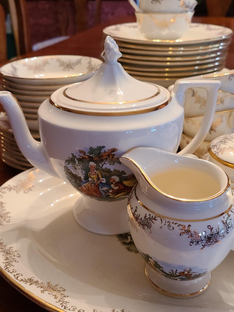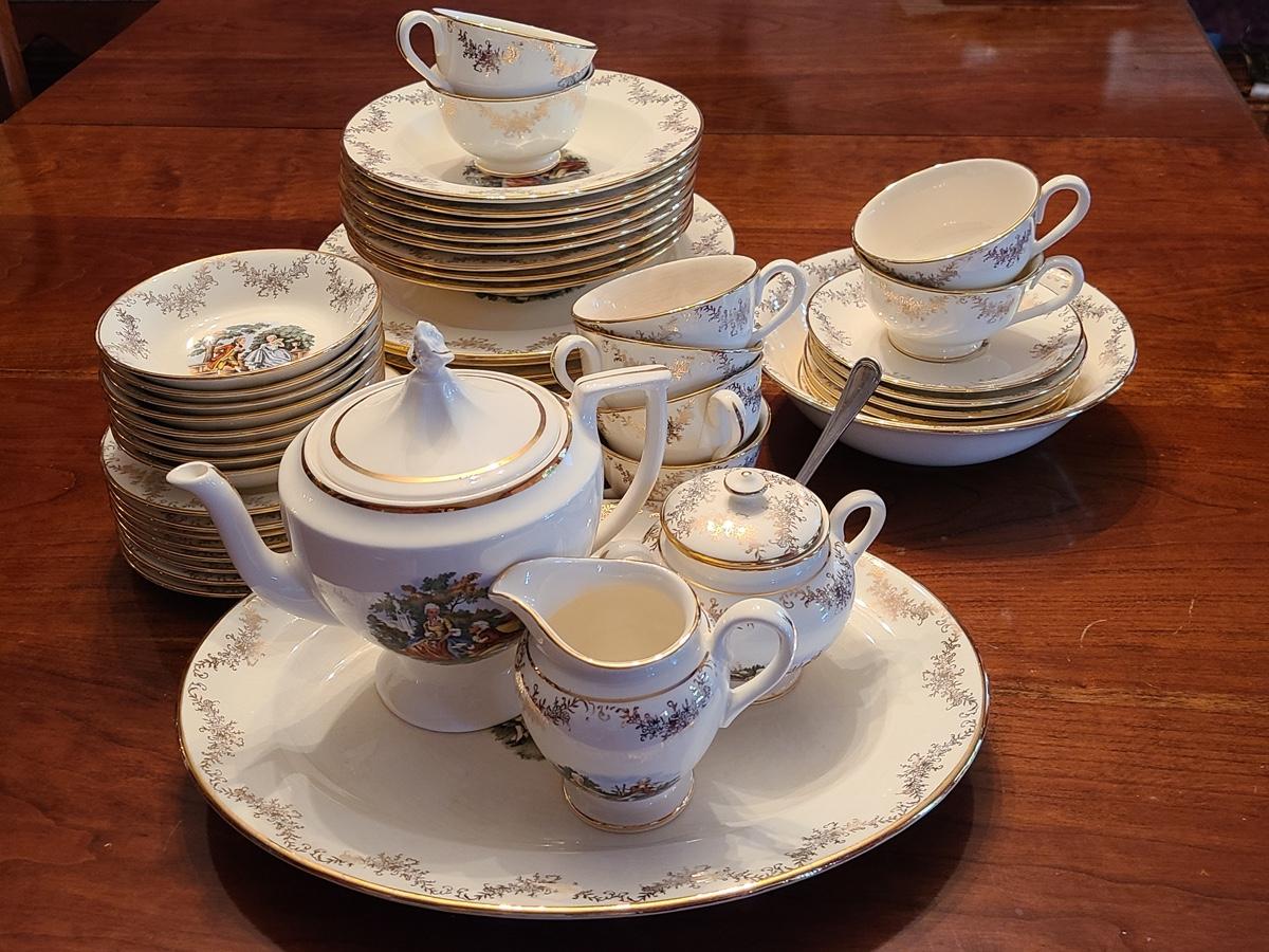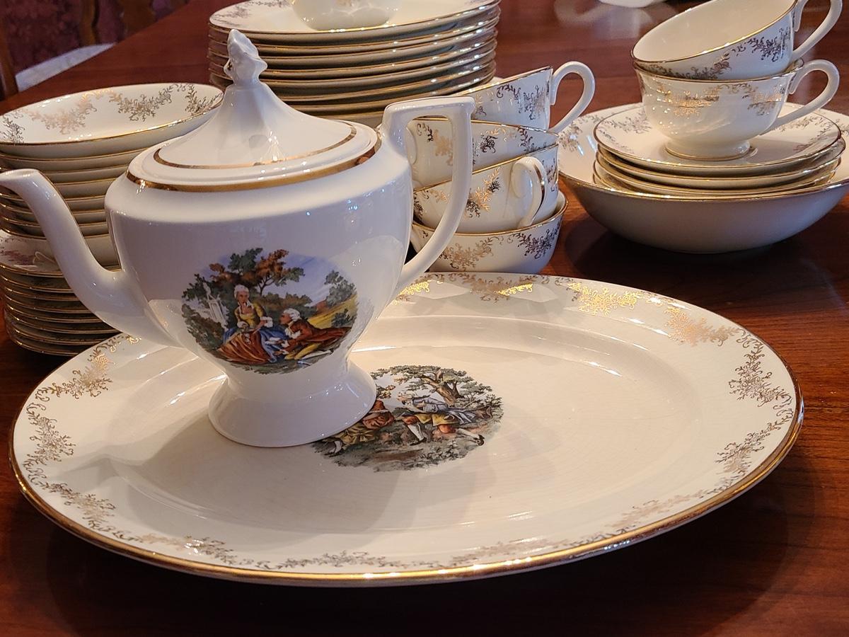 The gold on this set just shines, while this is vintage/antique it still looks new! Amazing set! Please see all pictures as they are the best representation of the items in the lot, the condition of the lot, and will show measurements if taken. If purchasing furniture you must be able to move yourself with your own help, and truck. This is located on the first floor.