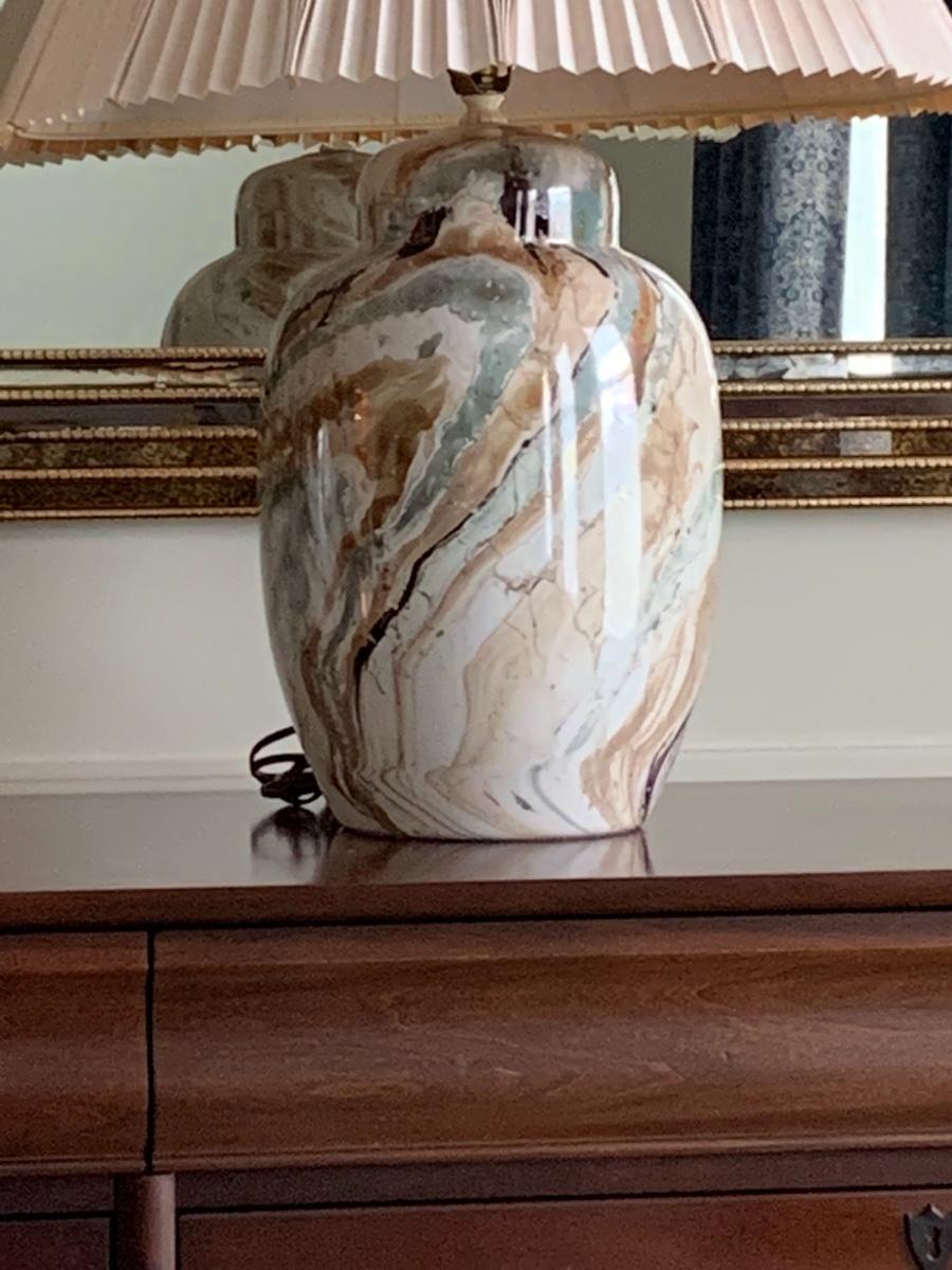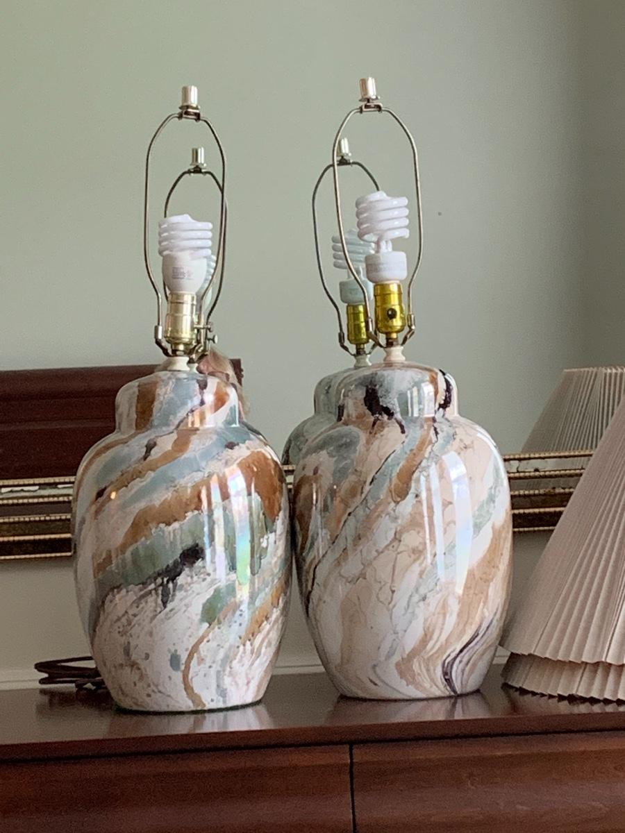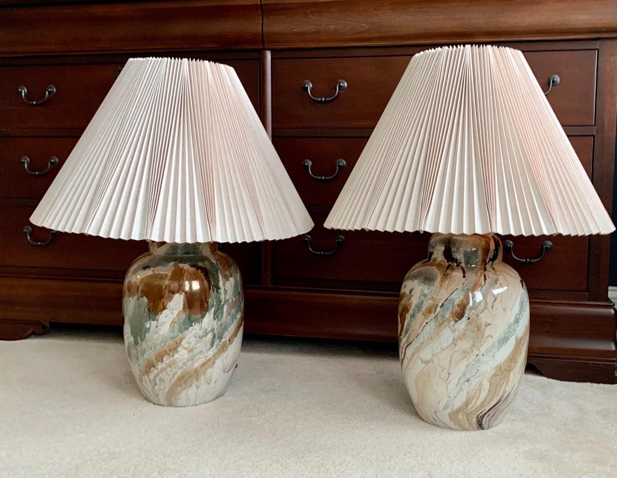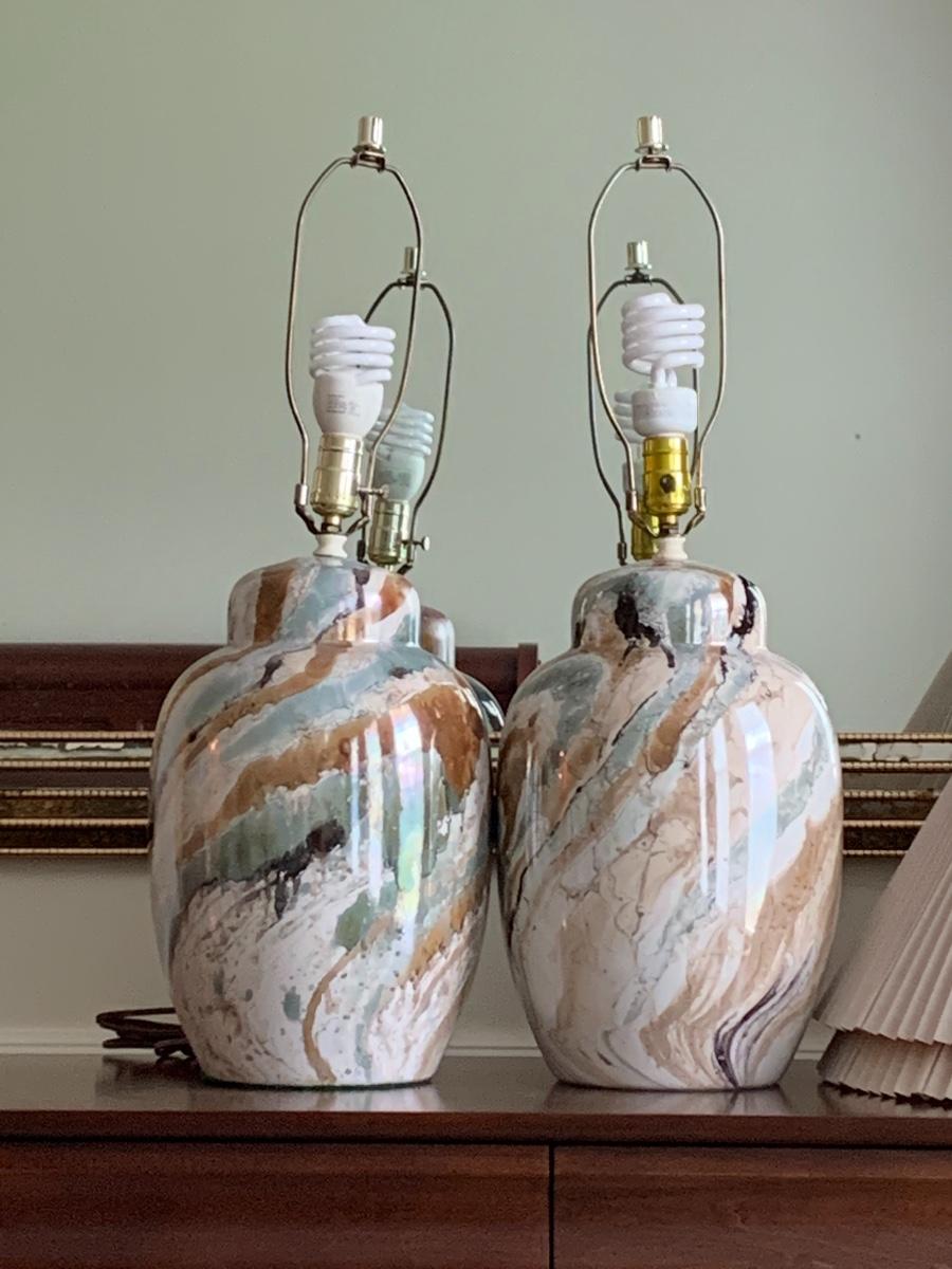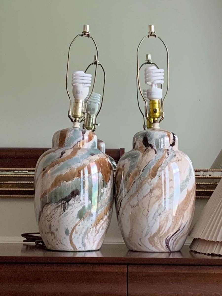 Lot 300: MCM Marbled Ceramic Lamps