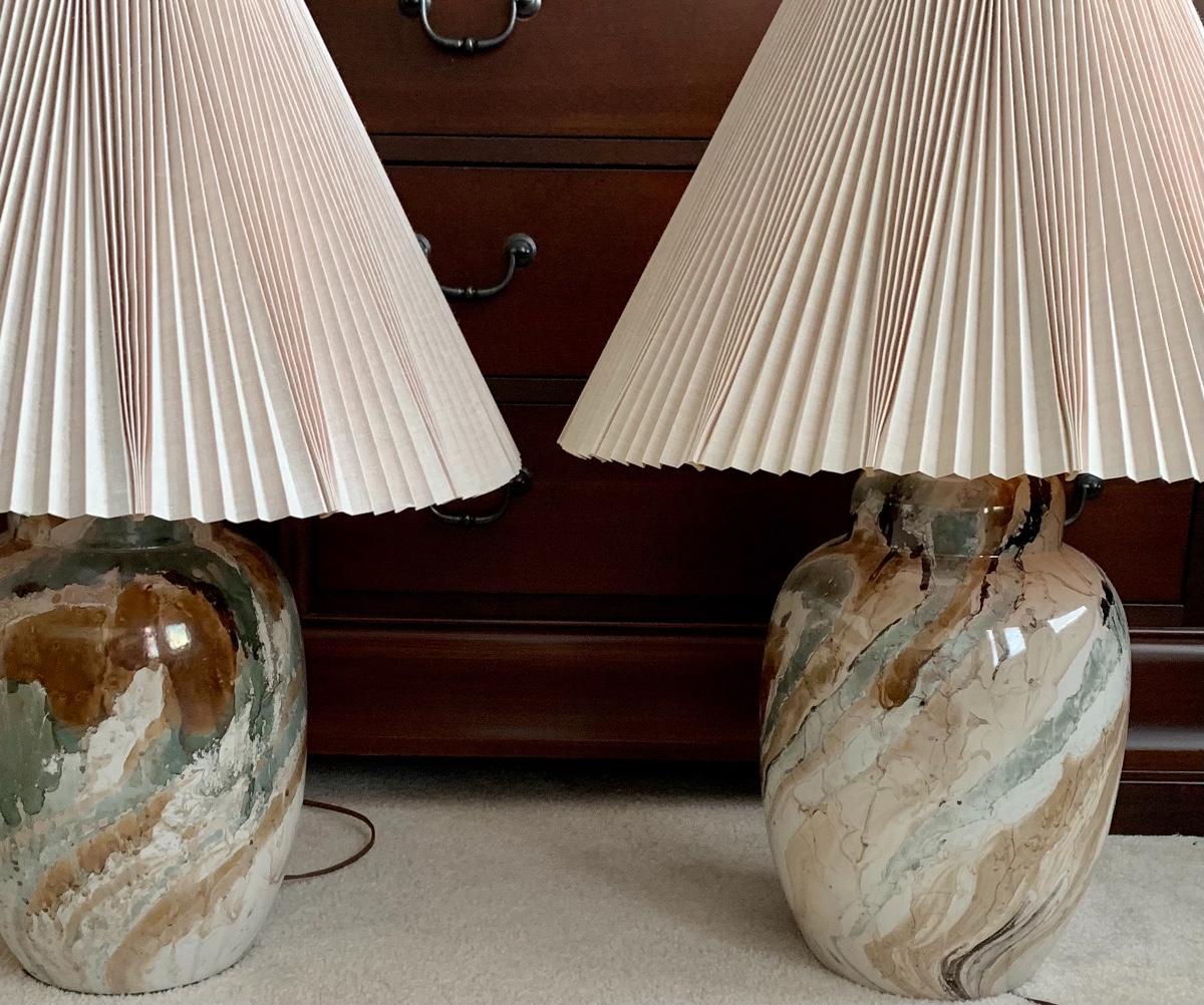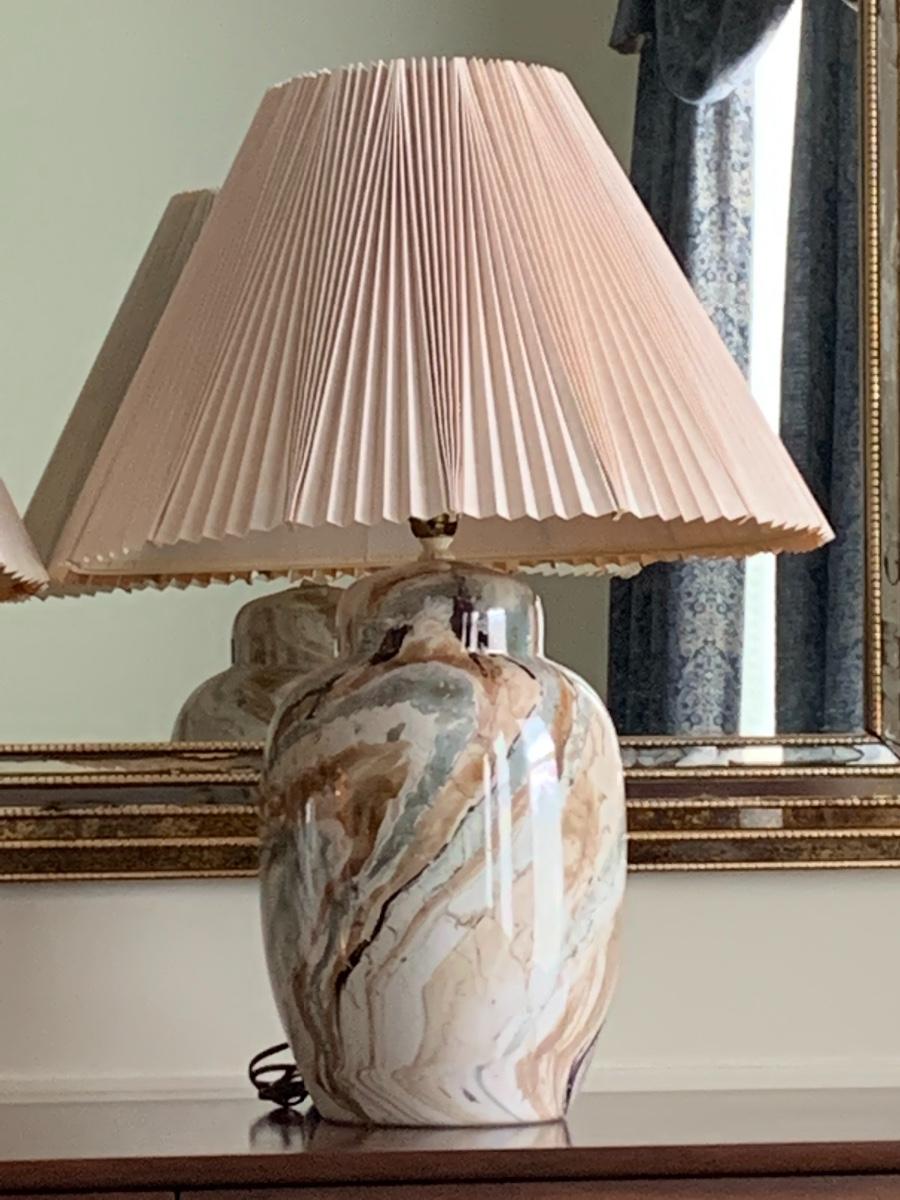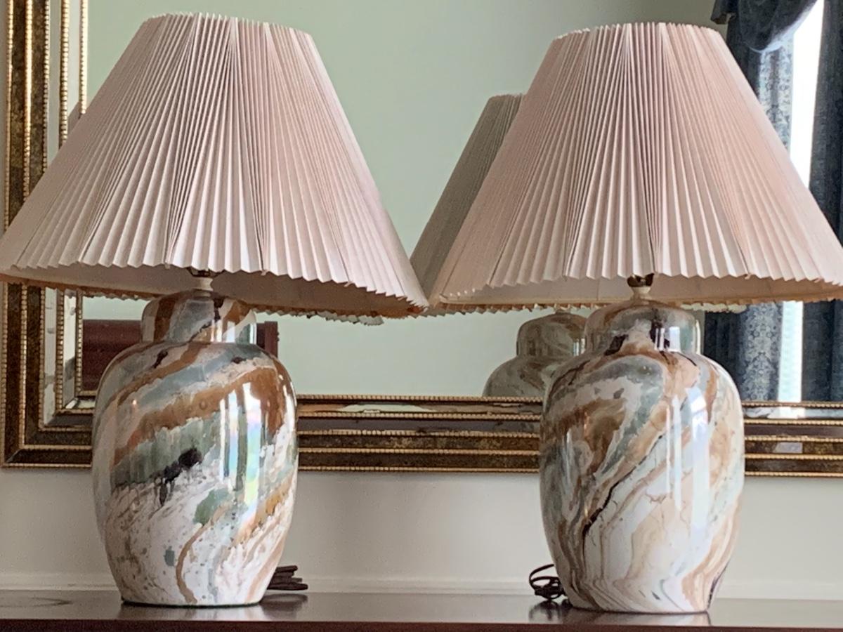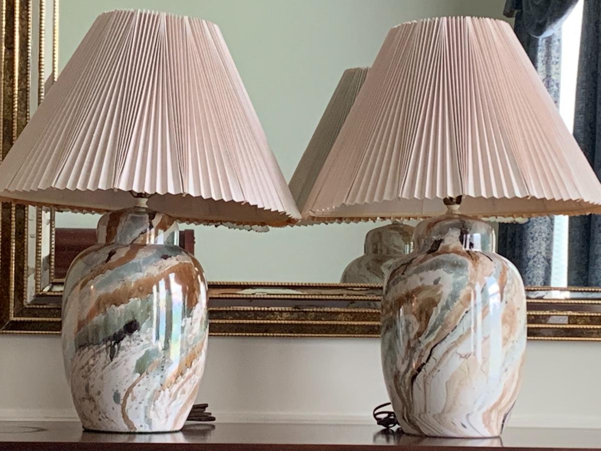 Lot 300: MCM Marbled Ceramic Lamps