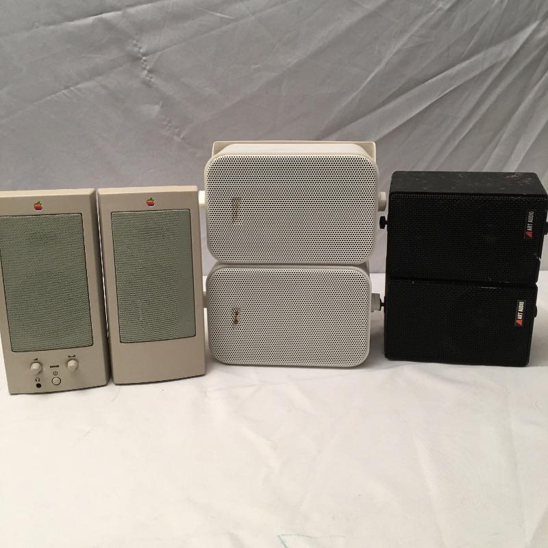 Lot includes one pair of Apple speakers model # M6082, One pair Audio Research model # AR-340 speakers and a pair of Art Audio model # BAW50 speakers. Speakers were not tested and the Apple speakers do not have power adapter. A great find for the audiophile.
