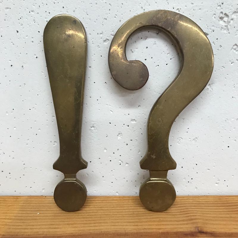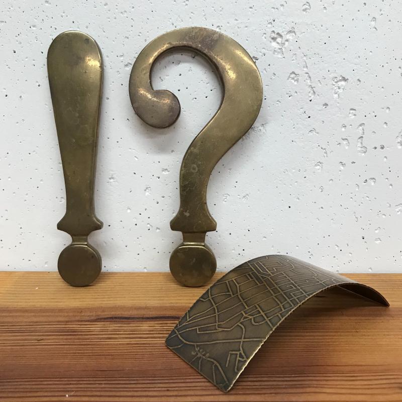 This fun Lot contains a brass exclamation point, question mark, and arched art piece that appears to have been made in Asheville. Question mark is approx. 6.25” tall. Shipping available or local pickup in Asheville, NC.