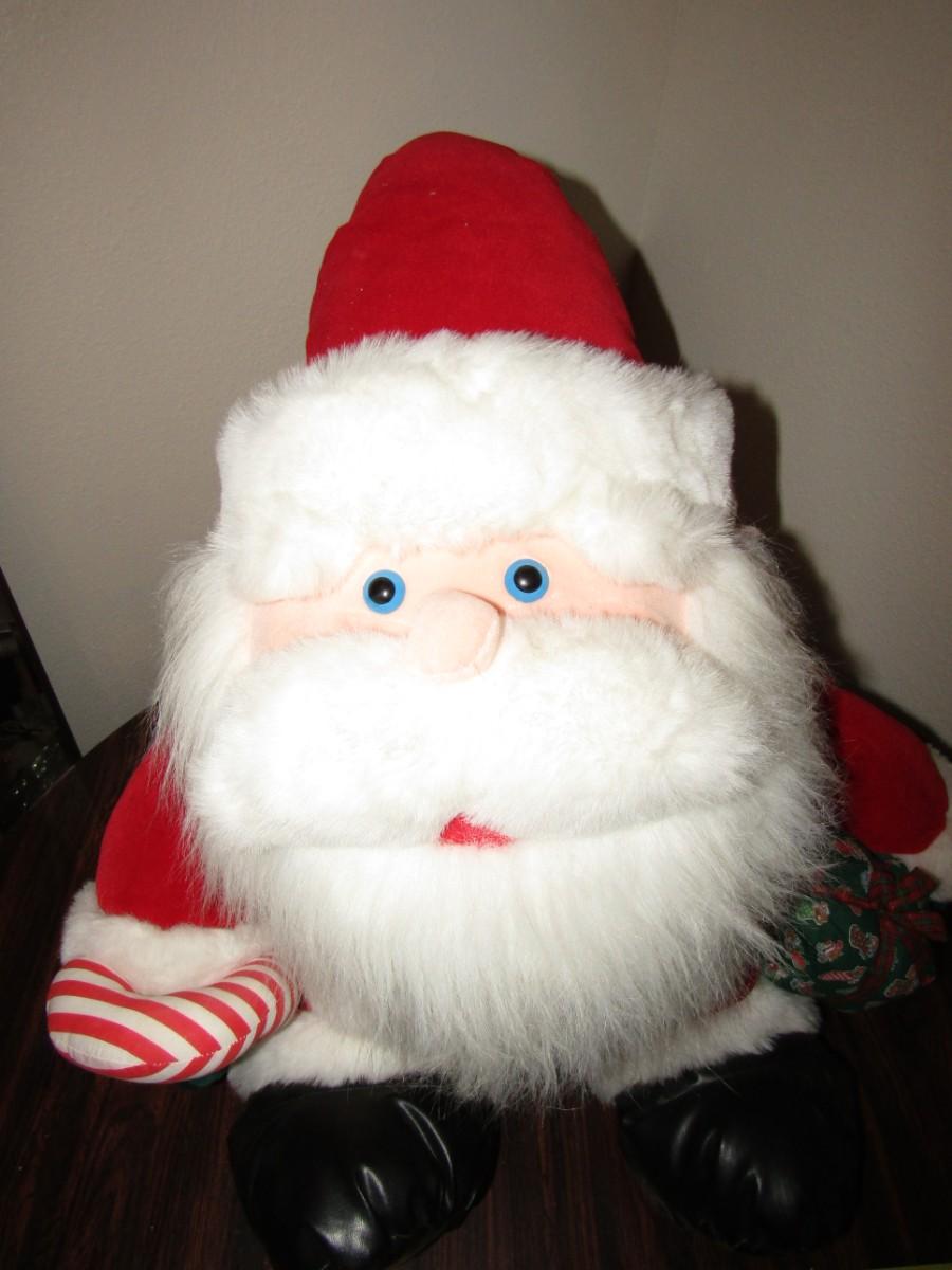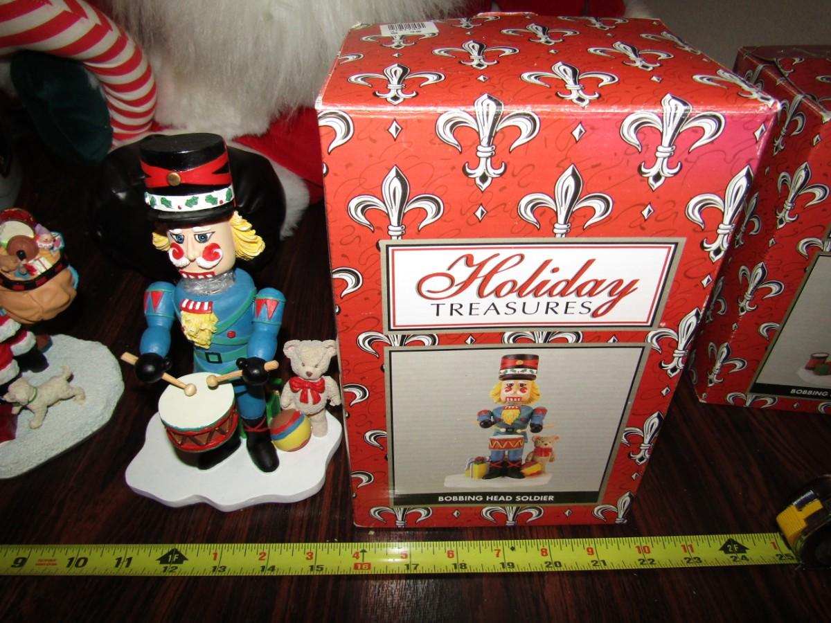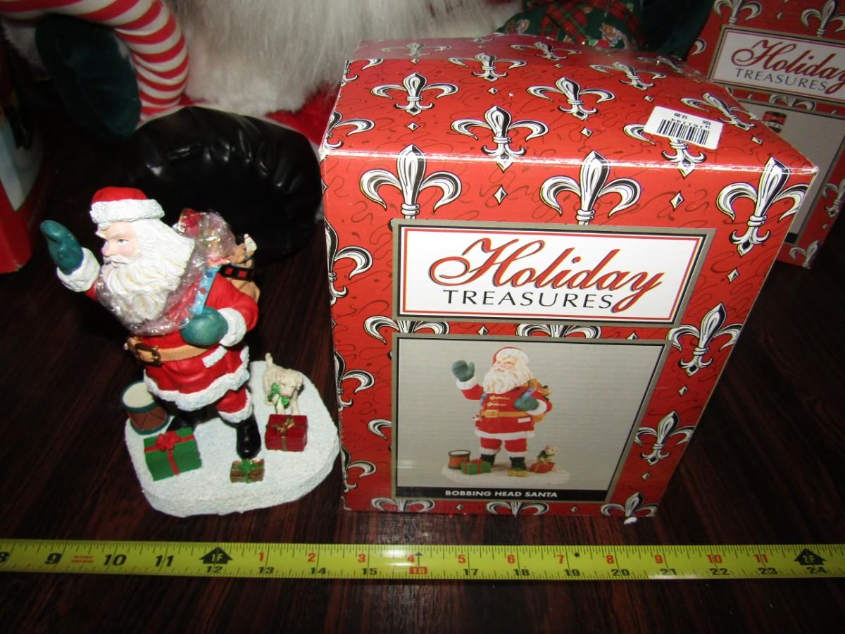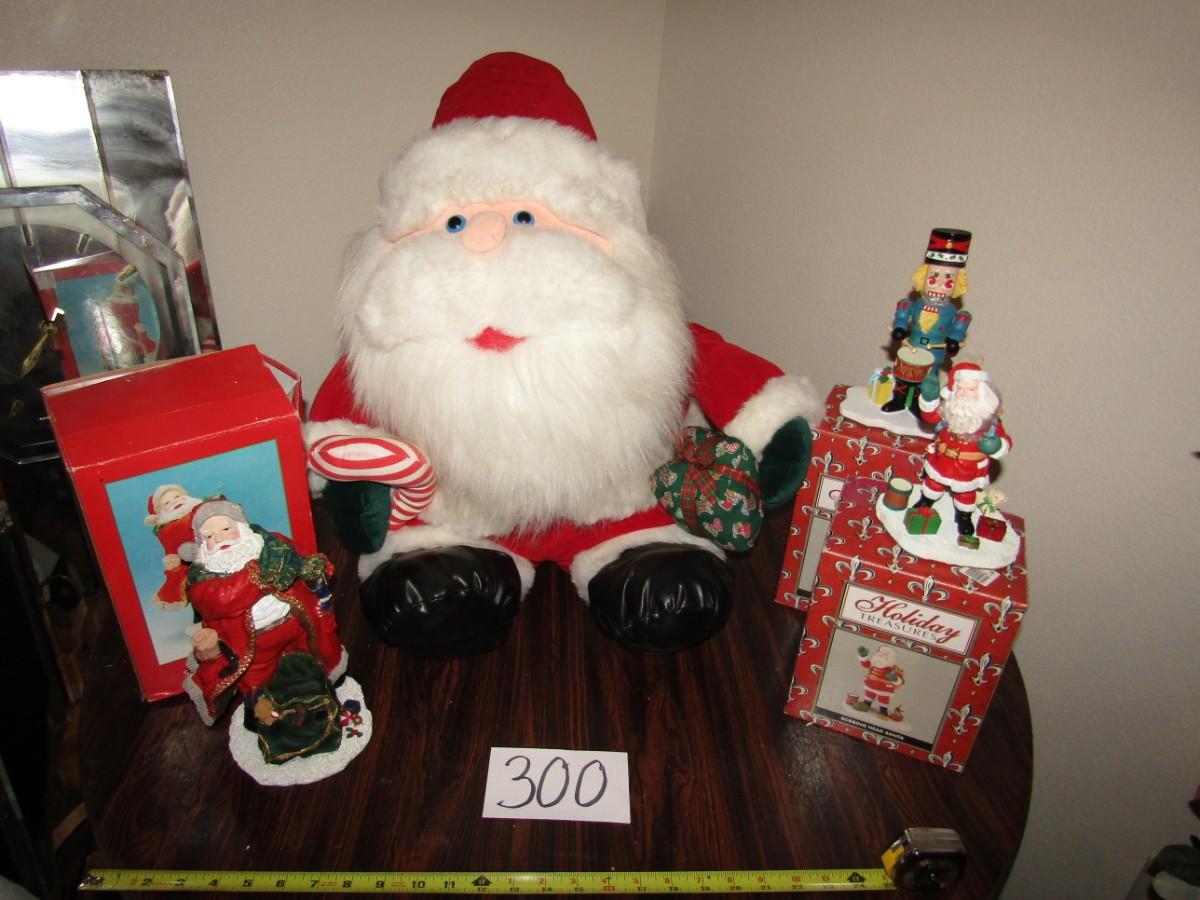 LARGE STUFFED SANTA, BOBBING HEAD SANTA AND SOLDIER, CERAMIC SANTA IN ORIGINAL BOX