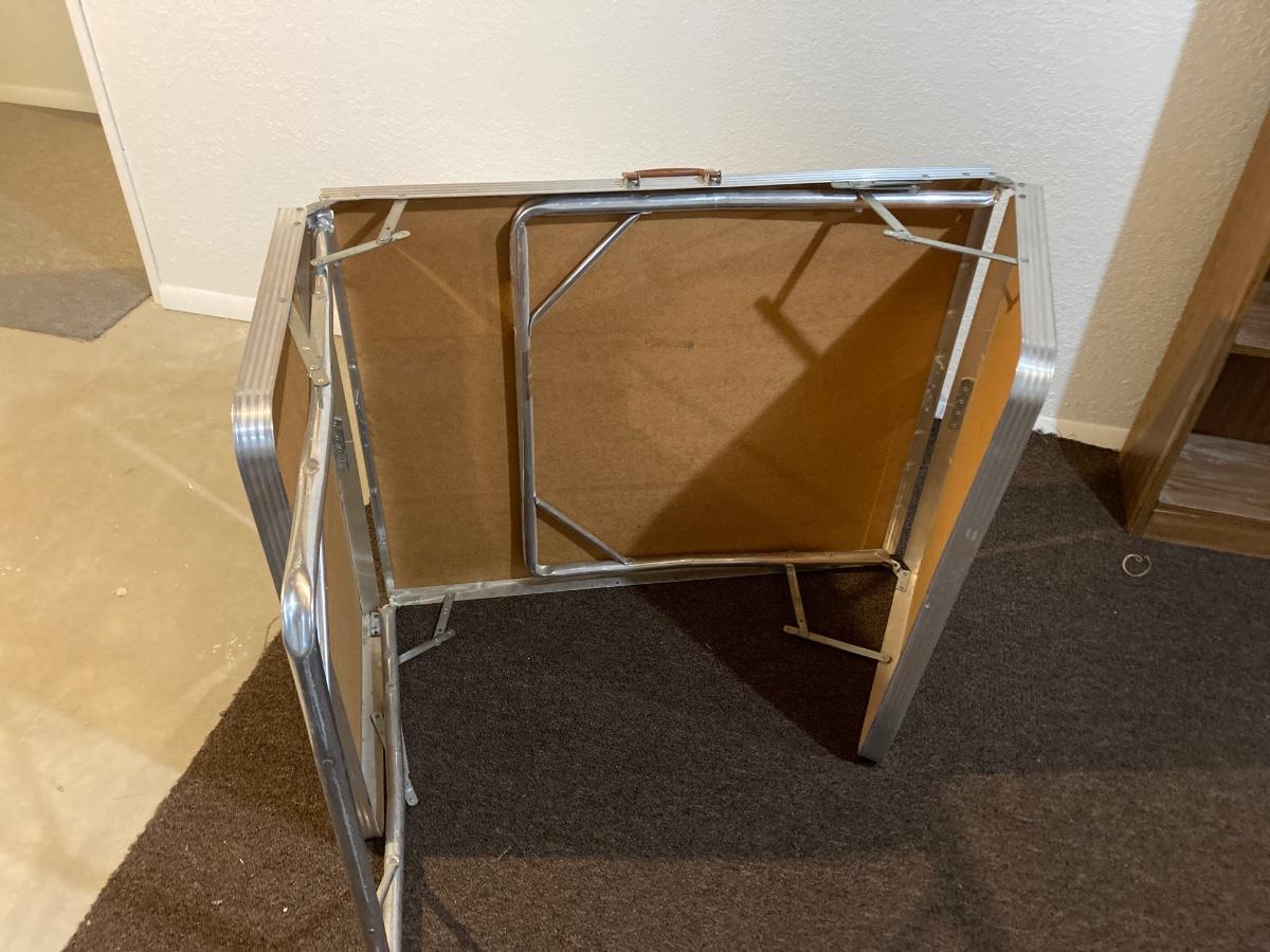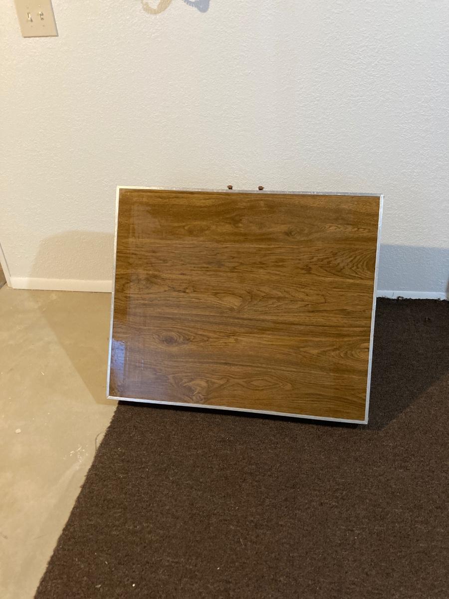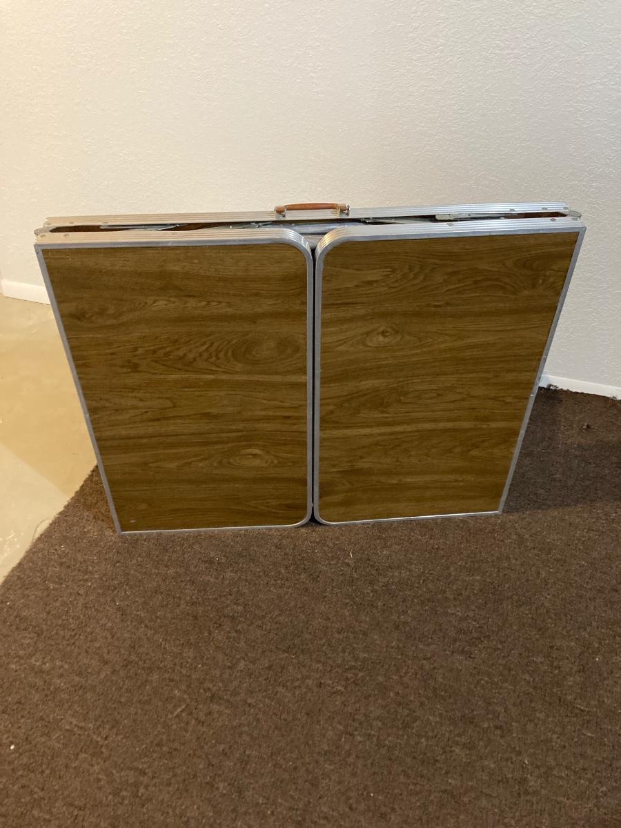 THIS TABLE IS 6’ LONG WHEN FOLDED ALL THE WAY OUT. IT CAN BE USED WITH THE OUTSIDE LEAFS UP OR DOWN