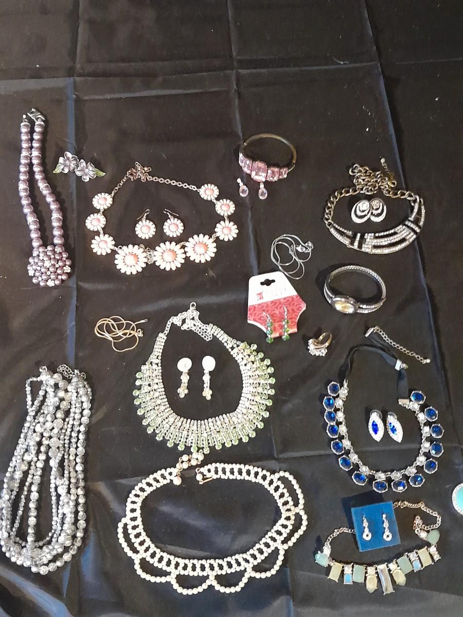 COSTUME JEWELRY, AVON, EARRINGS, NECKLACES AND MORE