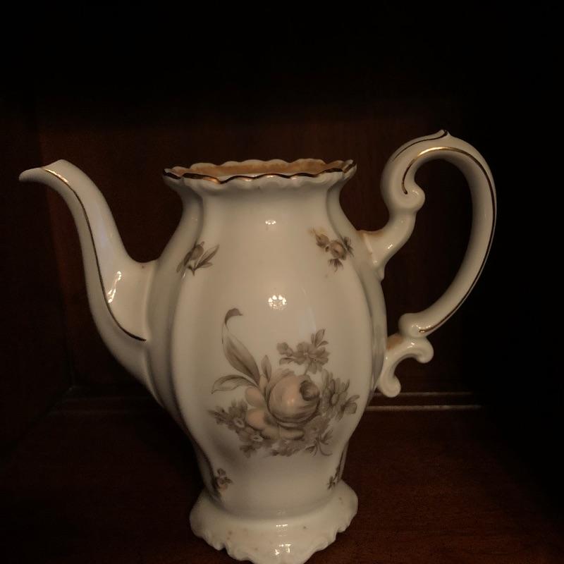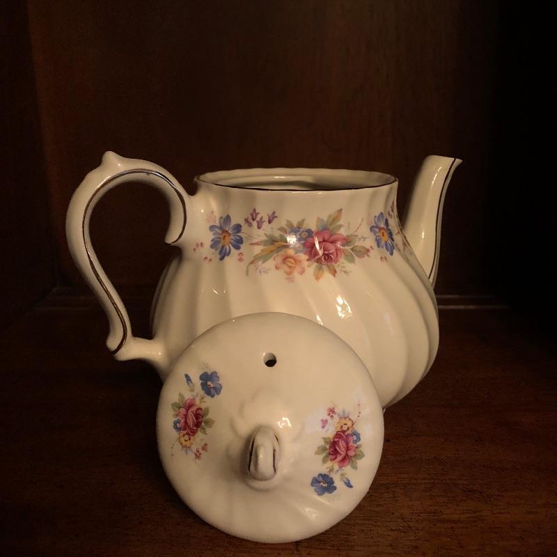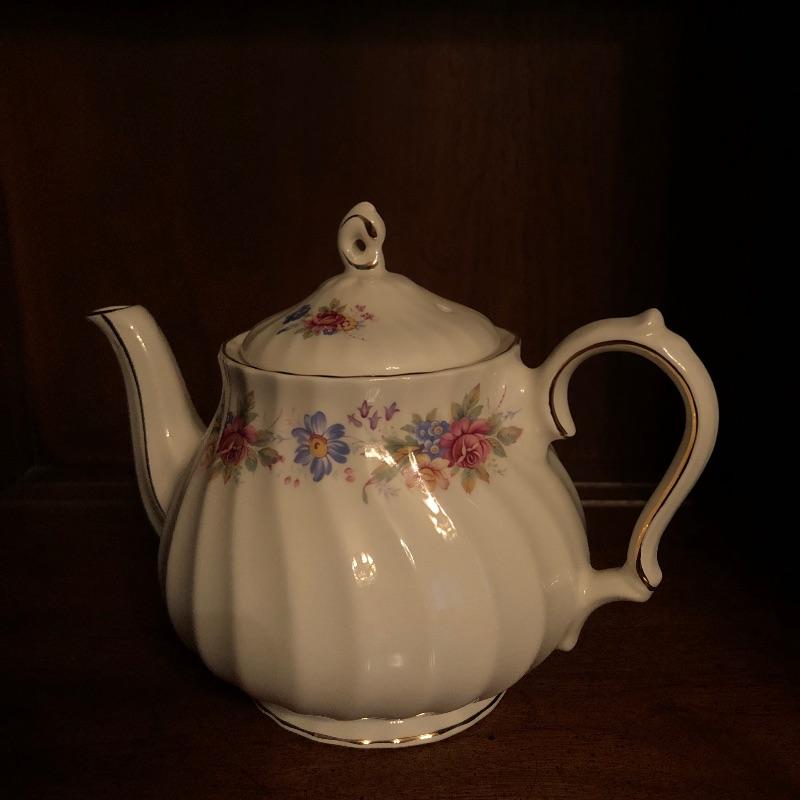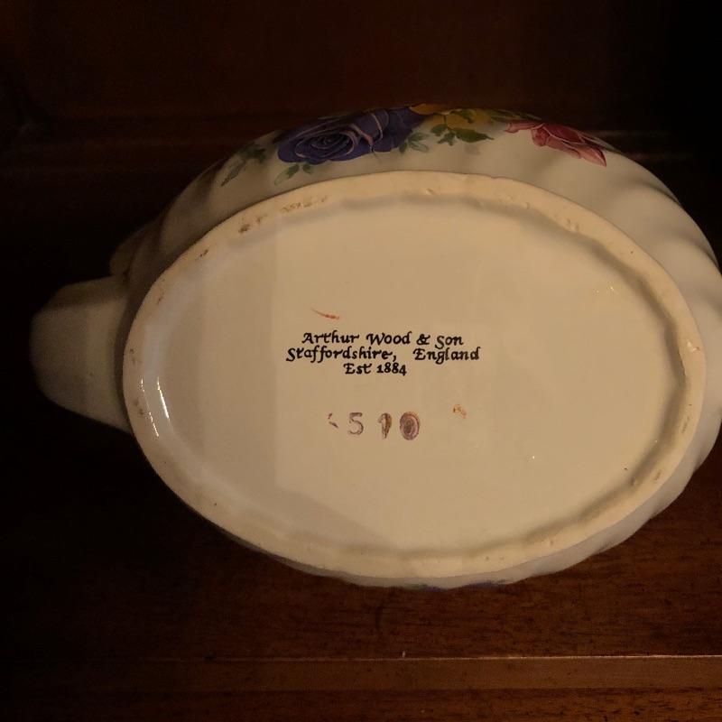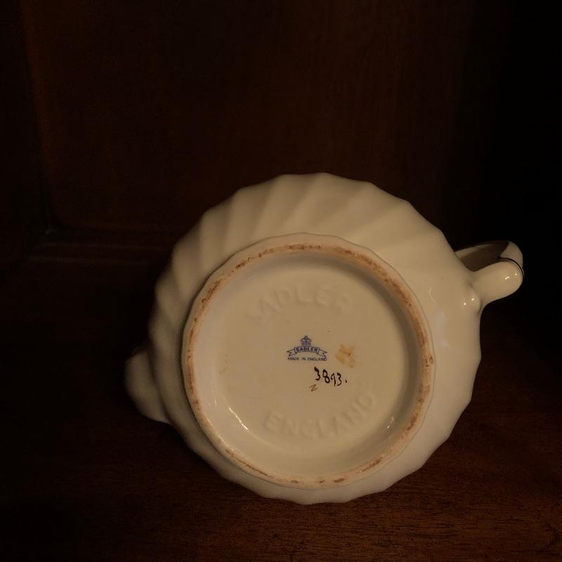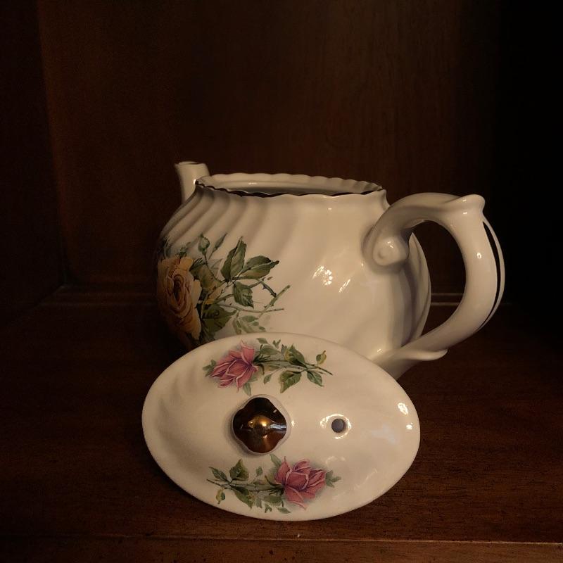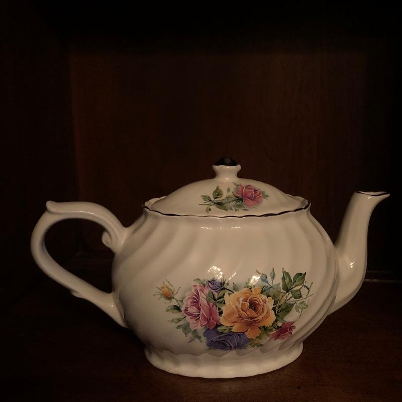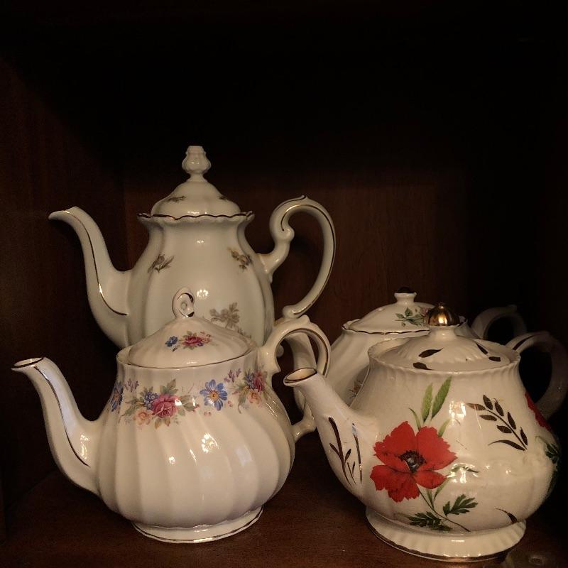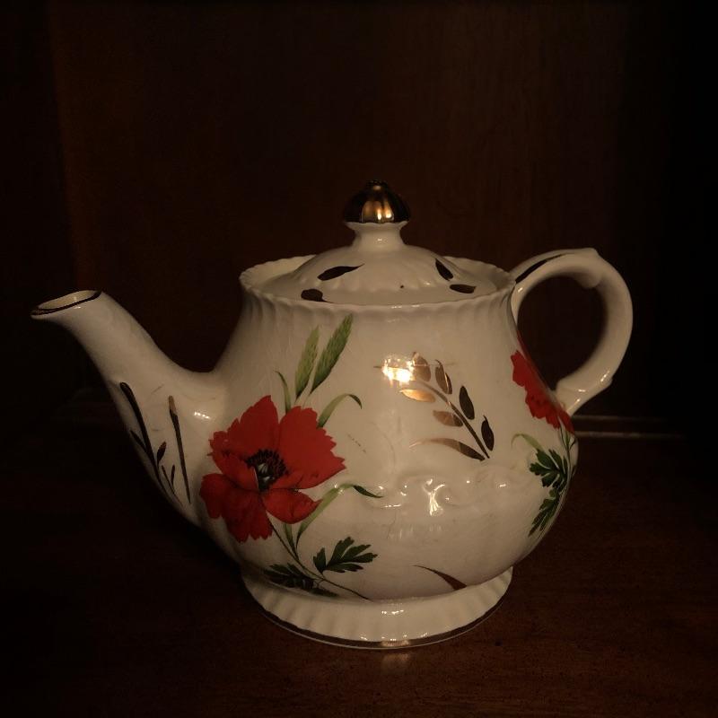 Beautiful teapot with vibrant red poppies by Ellgreave numbered 10735. the teapot with the gold colored trim by Sadler of England is numbered 3893. The other smaller teapot by Arthur Wood & Son is also numbered, however the first number is not identifiable- see photos. The tallest teapot measures 10” x 6” x 11”. Shipping available. Call the UPS store at 828 252-6930 for quote.