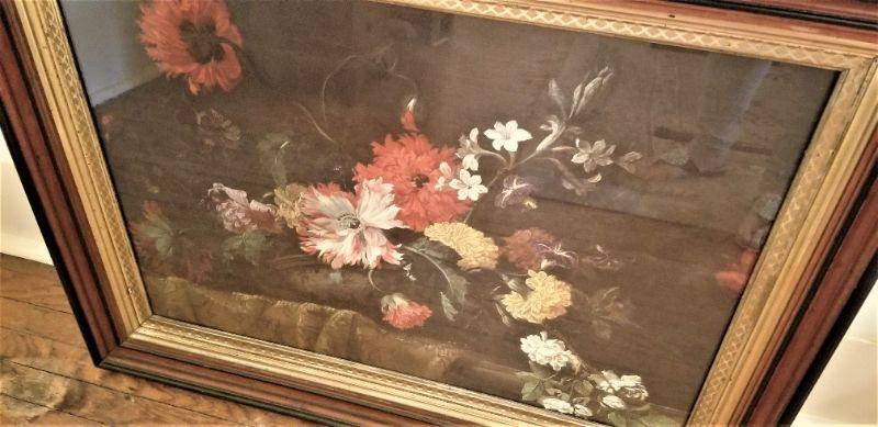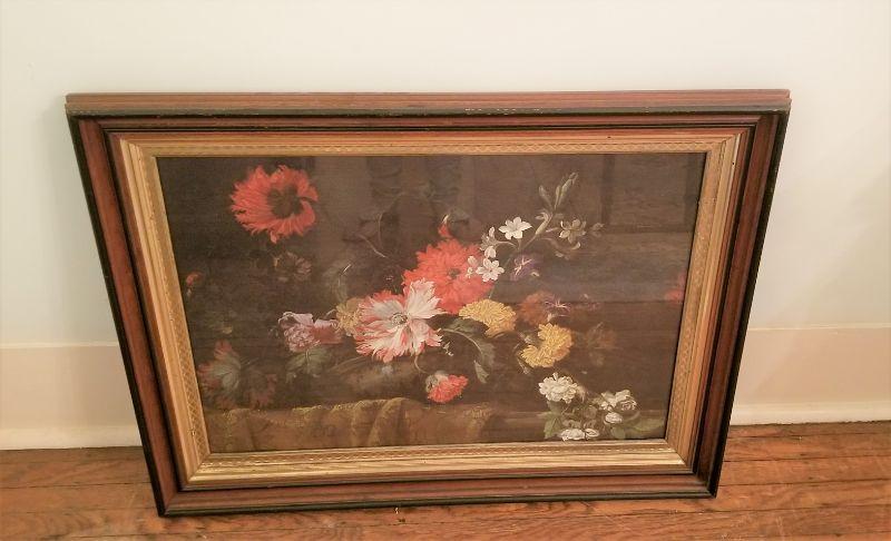 Lot #300 Large Floral Print in Antique Frame - deep colors