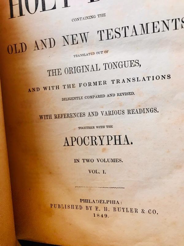 Lot 300N: 1849 Bible, The original Tongues and Apocrypha