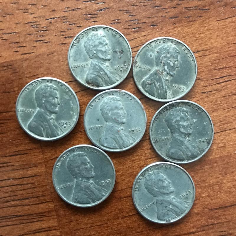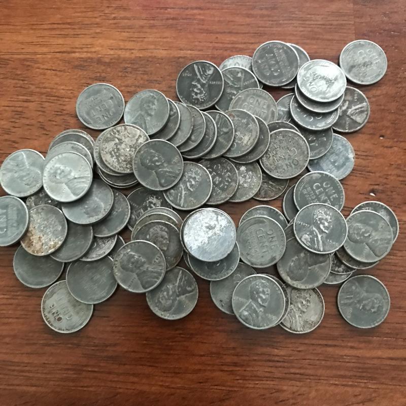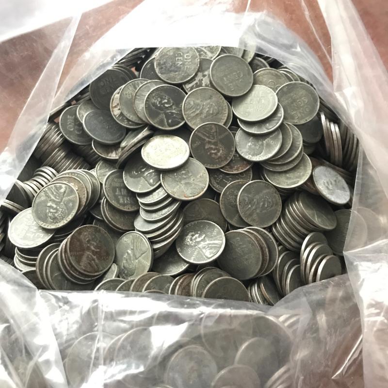 Large collection of over a thousand steel pennies. 1234 of them! Look to be all from 1943. Shipping or local pick up.