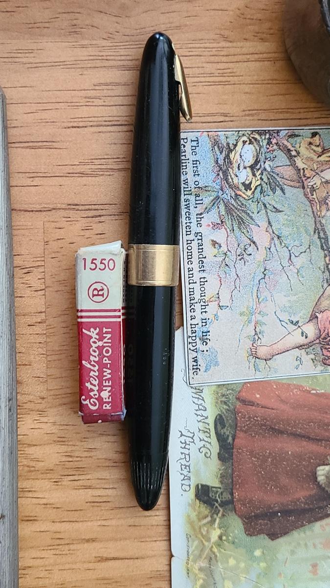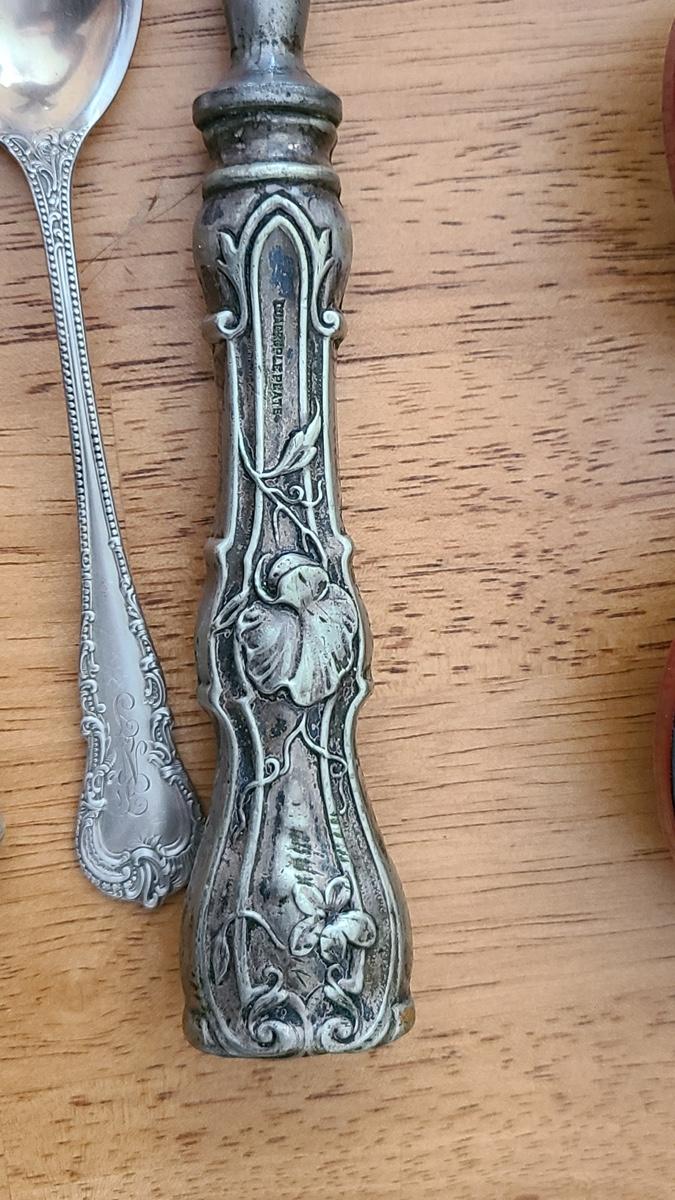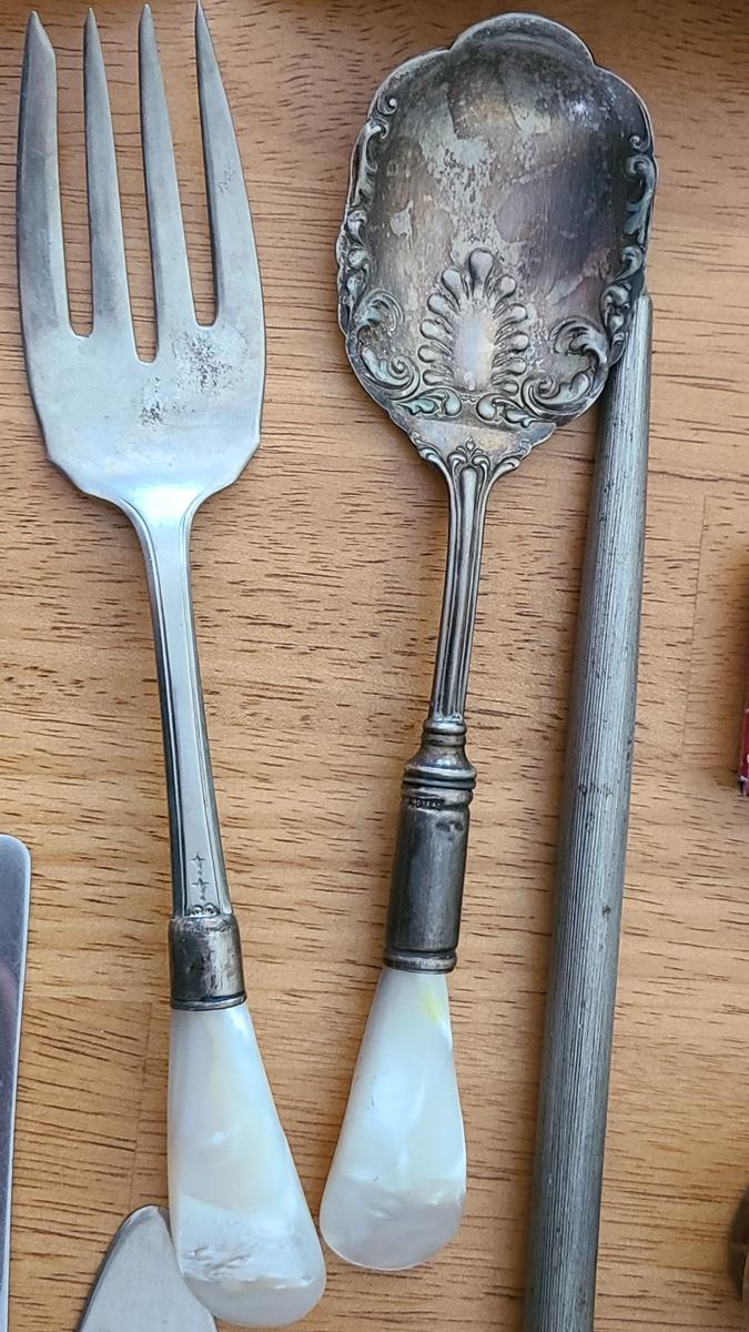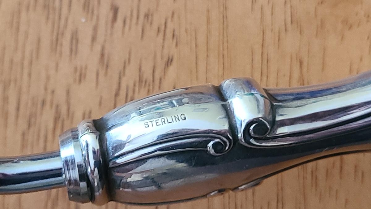 This is a lot of antique/vintage collectibles including: Sterling silver spoon, sterling silver handled serving pieces, an advertising Bra matchbook, vintage military postcards, unique silver-plate and glass shaker, 14K nib Sheaffers Fountain Pen, and more! Please see all pictures for content of the lot, condition of the lot, and measurements if taken. Pictures are the best representation of the items listed and items are untested unless indicated in description. Thank you for looking and have fun bidding!