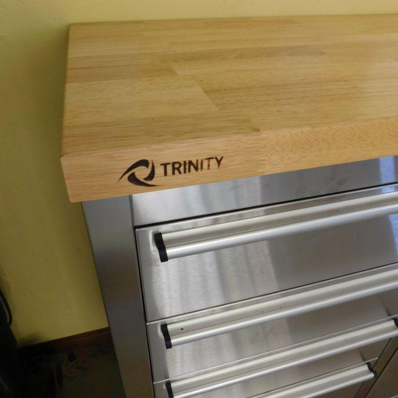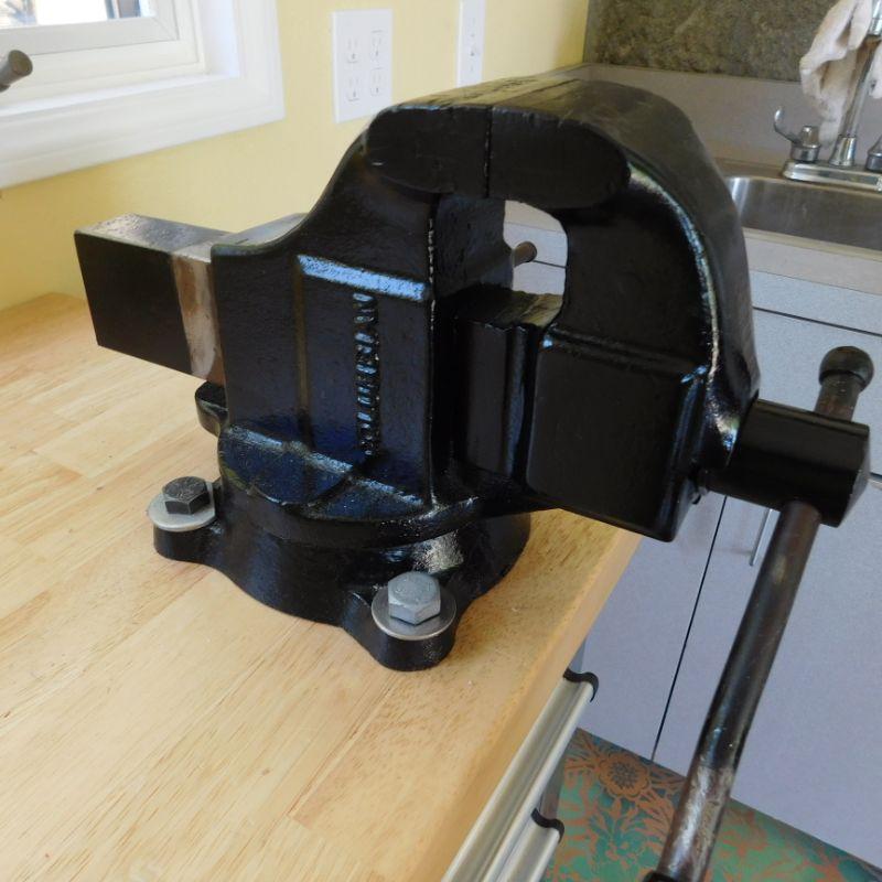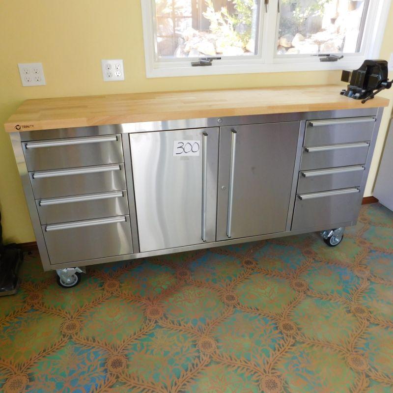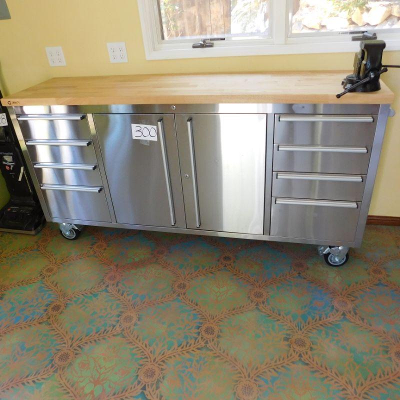 Lot 300. Work bench with Stainless cabinets (Trinity Brand) and recondition vintage vise