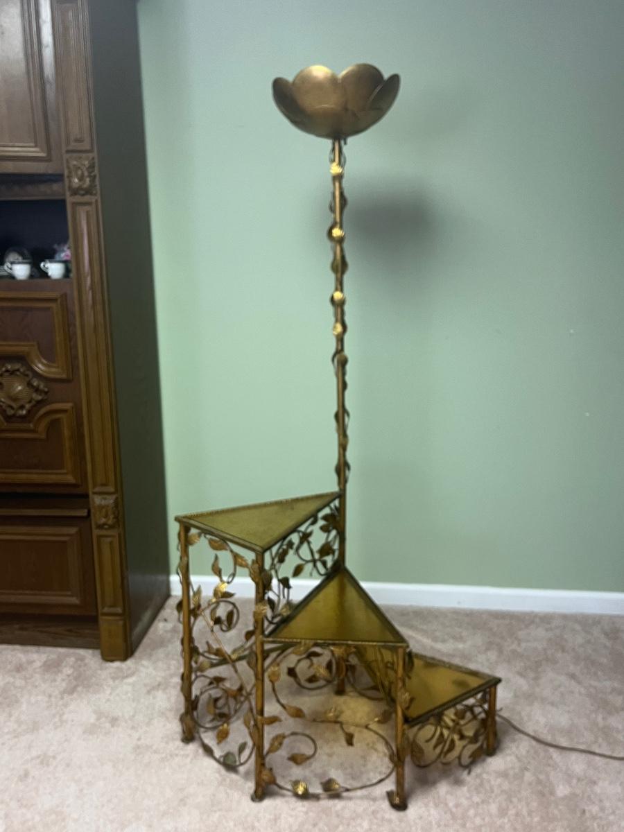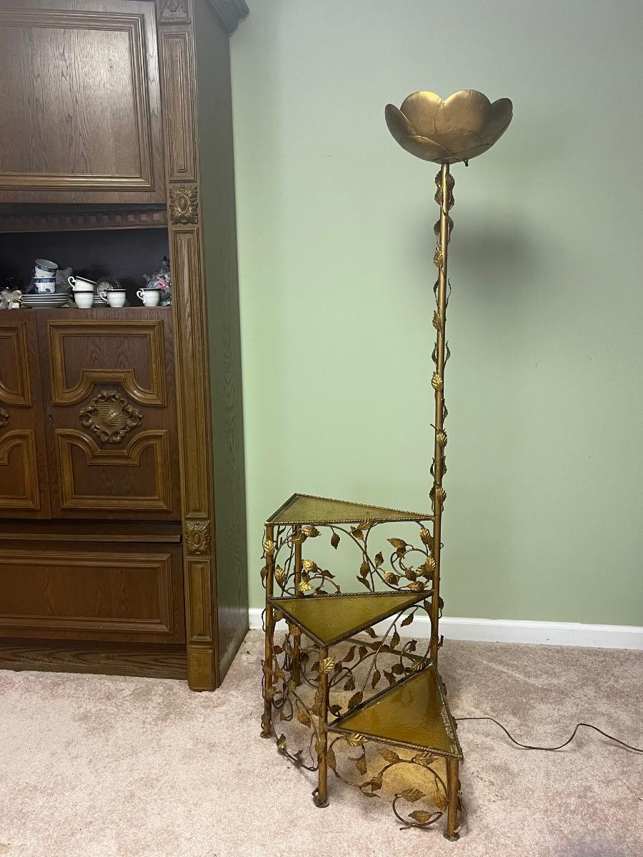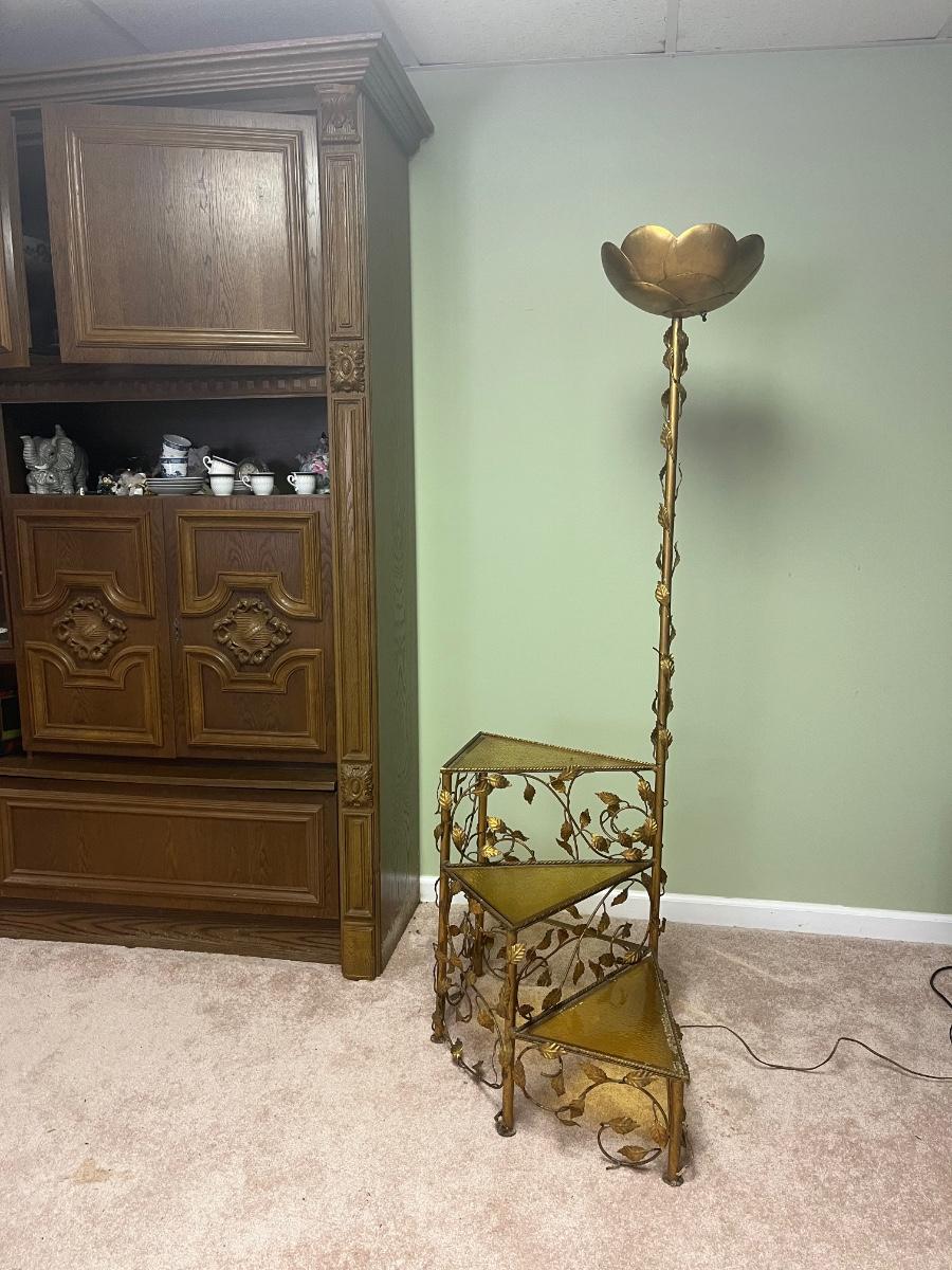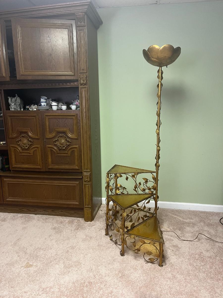 Lot 300C: Vintage MCM Italian Style Floor Lamp with Attached Spiral Table