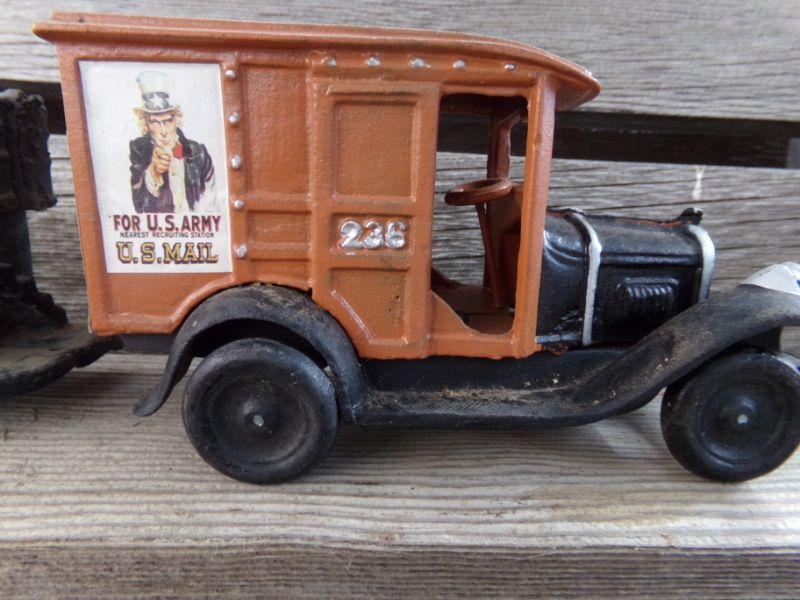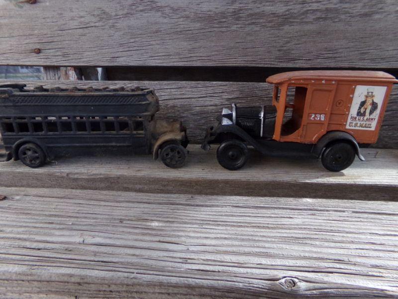 LOT 301 CAST IRON DOUBLE DECKER & UNCLE SAM VAN