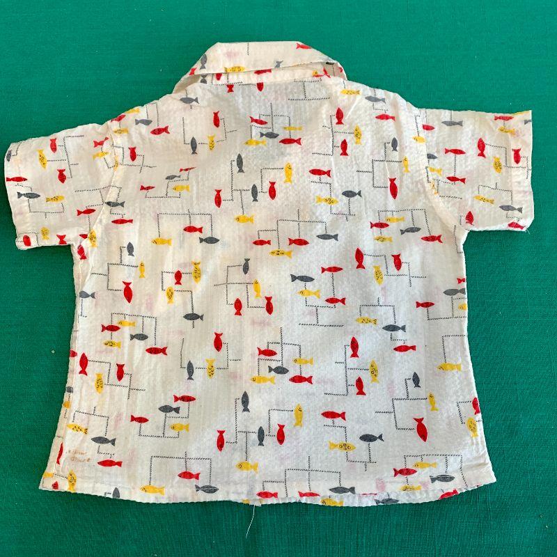 LOT 301 VINTAGE 1950S BOYS SHORT SLEEVE SHIRT MODERNIST FISH PRINT