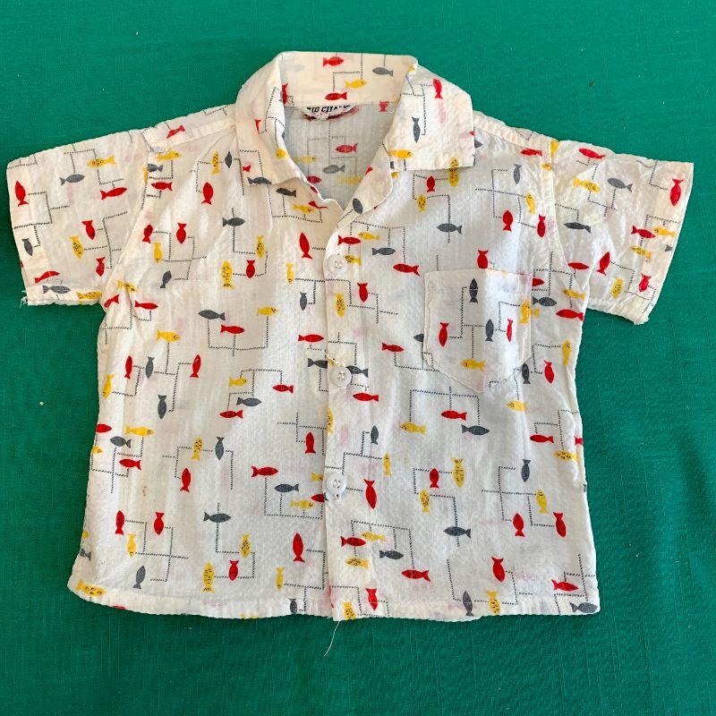 Crinkle cotton short sleeve little boys shirt. Size 2T