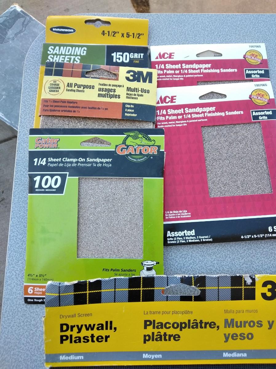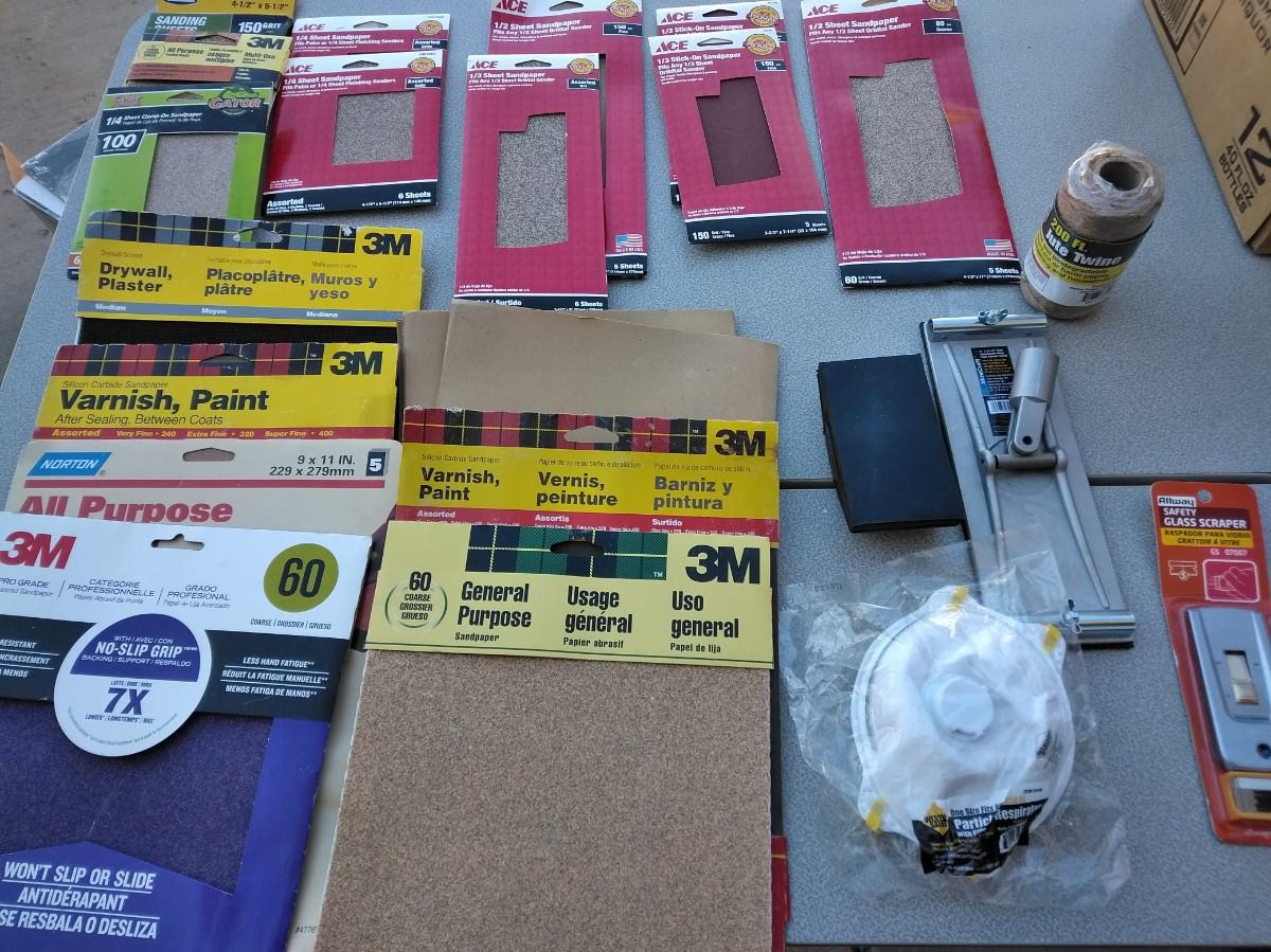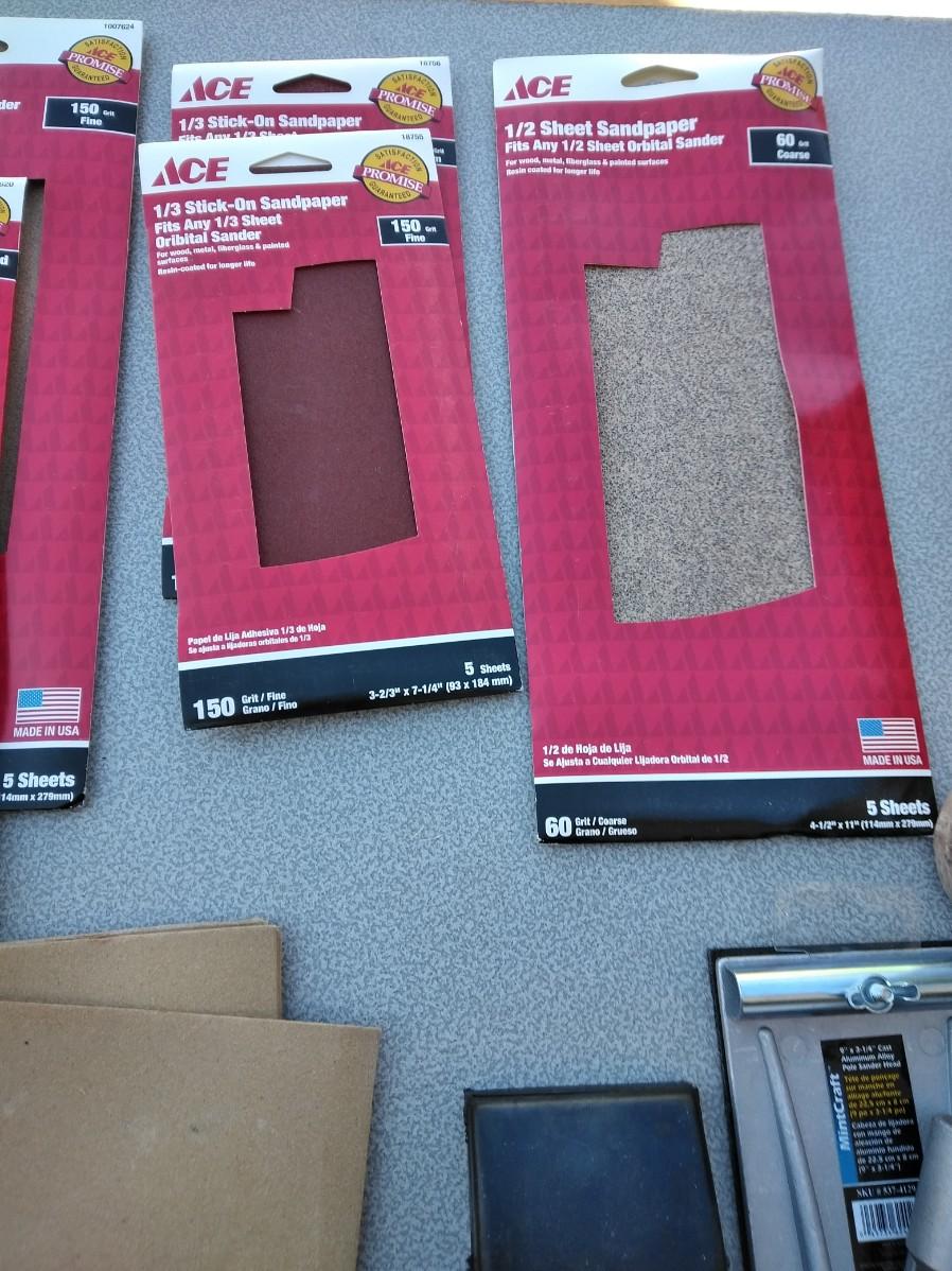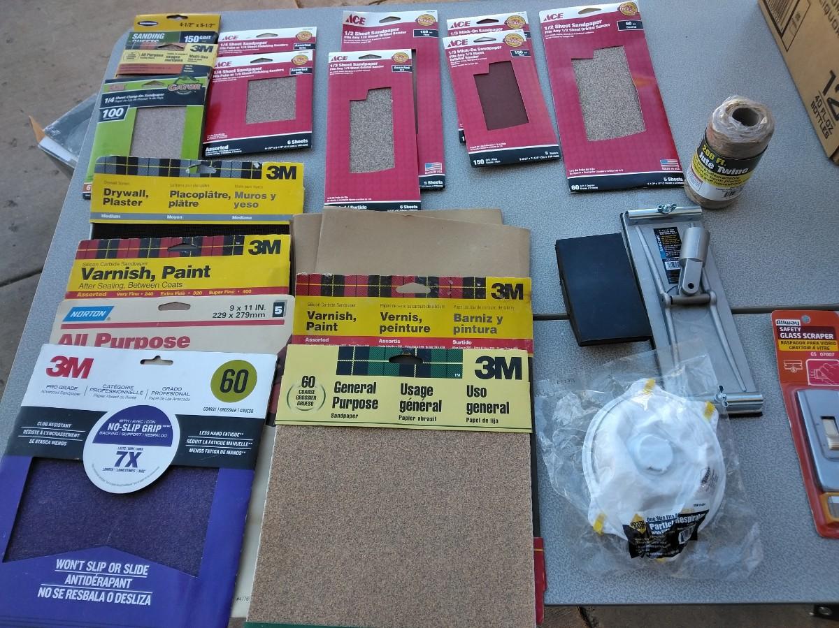 ASSORTMENT OF SANDPAPER AND HAND SANDERS