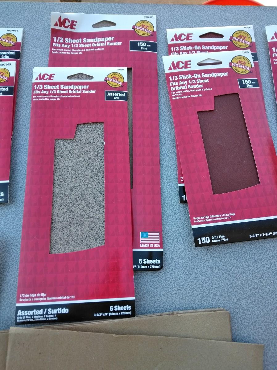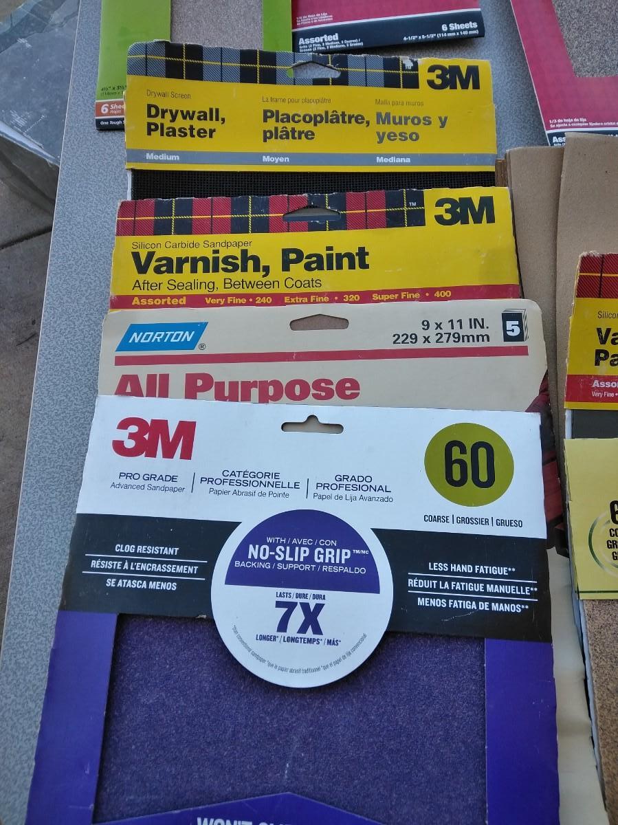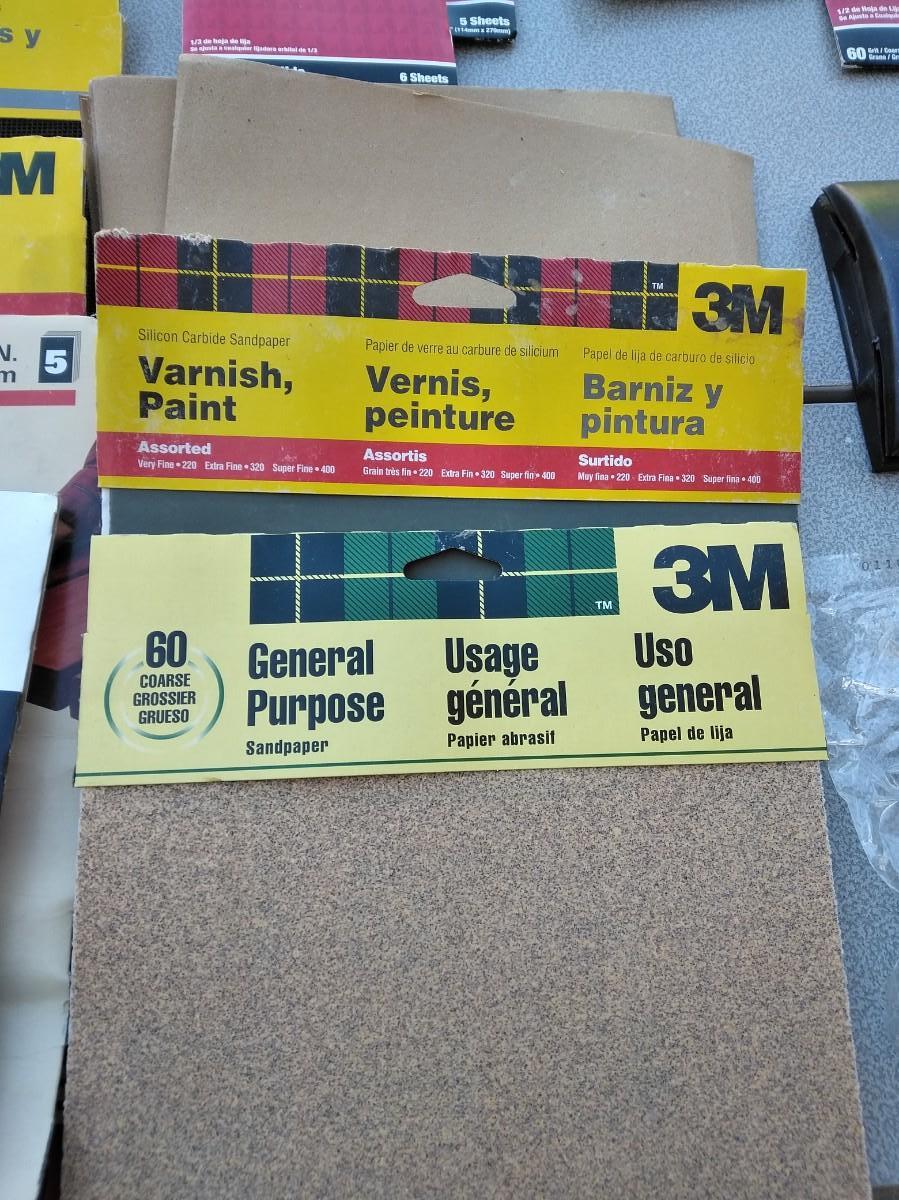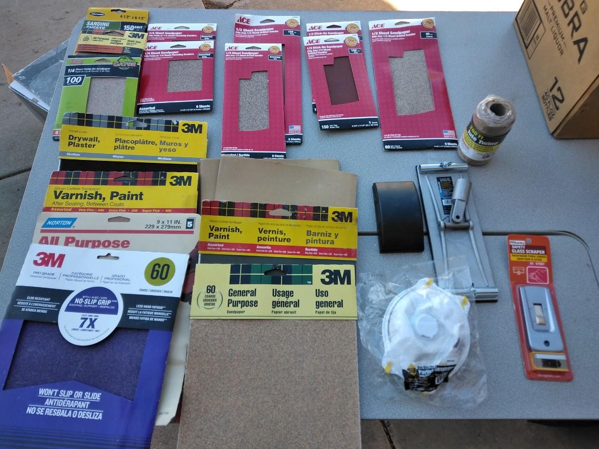 ASSORTMENT OF SANDPAPER AND HAND SANDERS