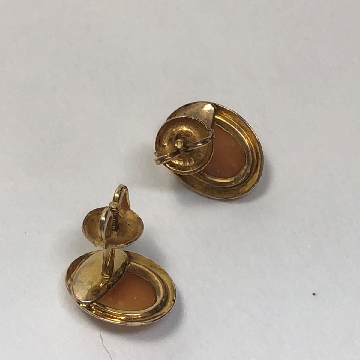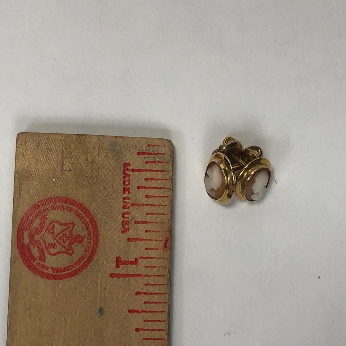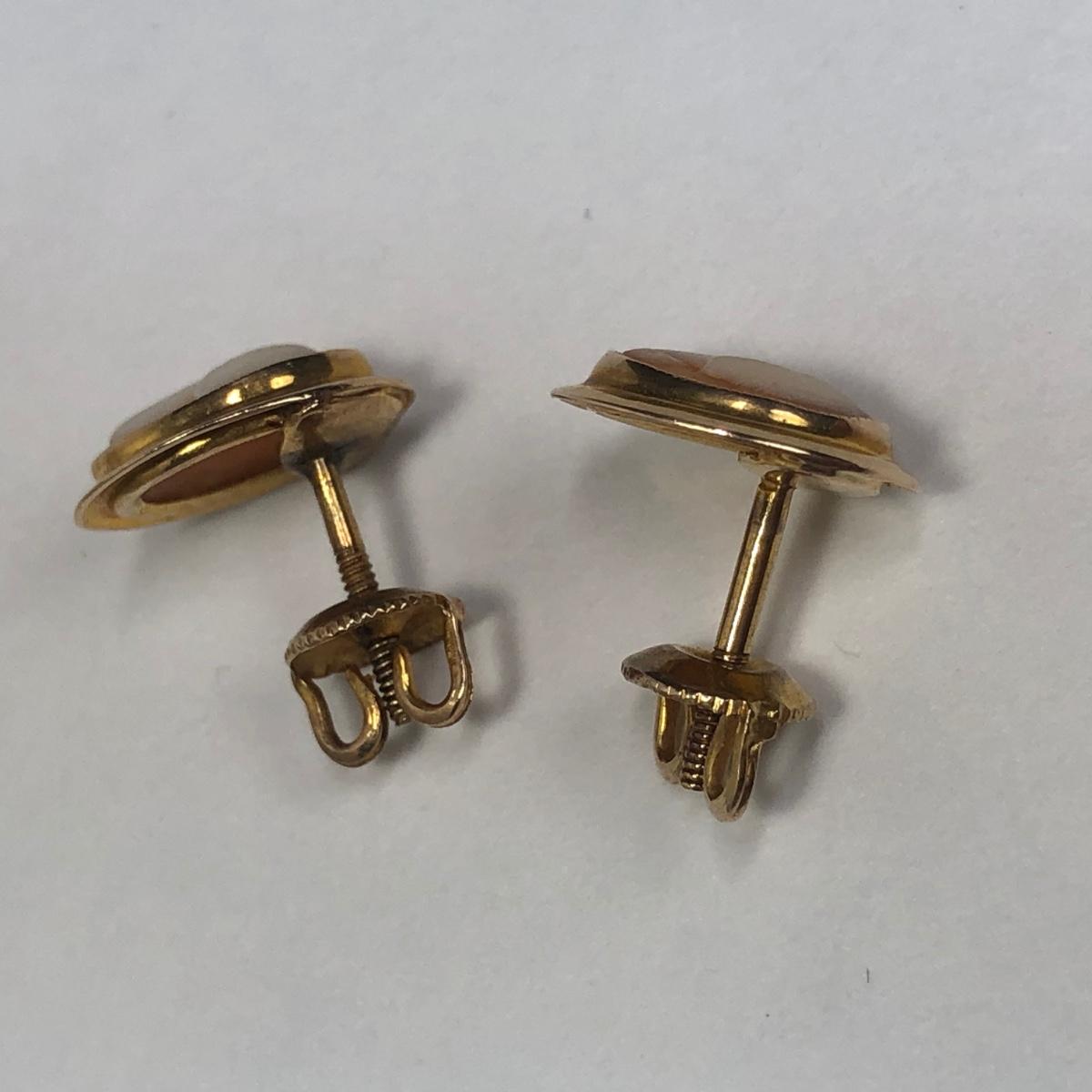 LOT 301: Antique/Vintage 10K Gold Cameo Post Pierced Screwback Earrings Marked BCA (tw: 1.5g)