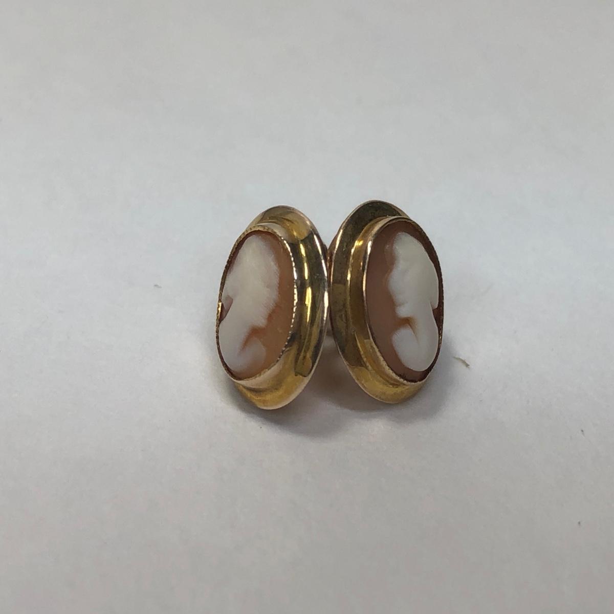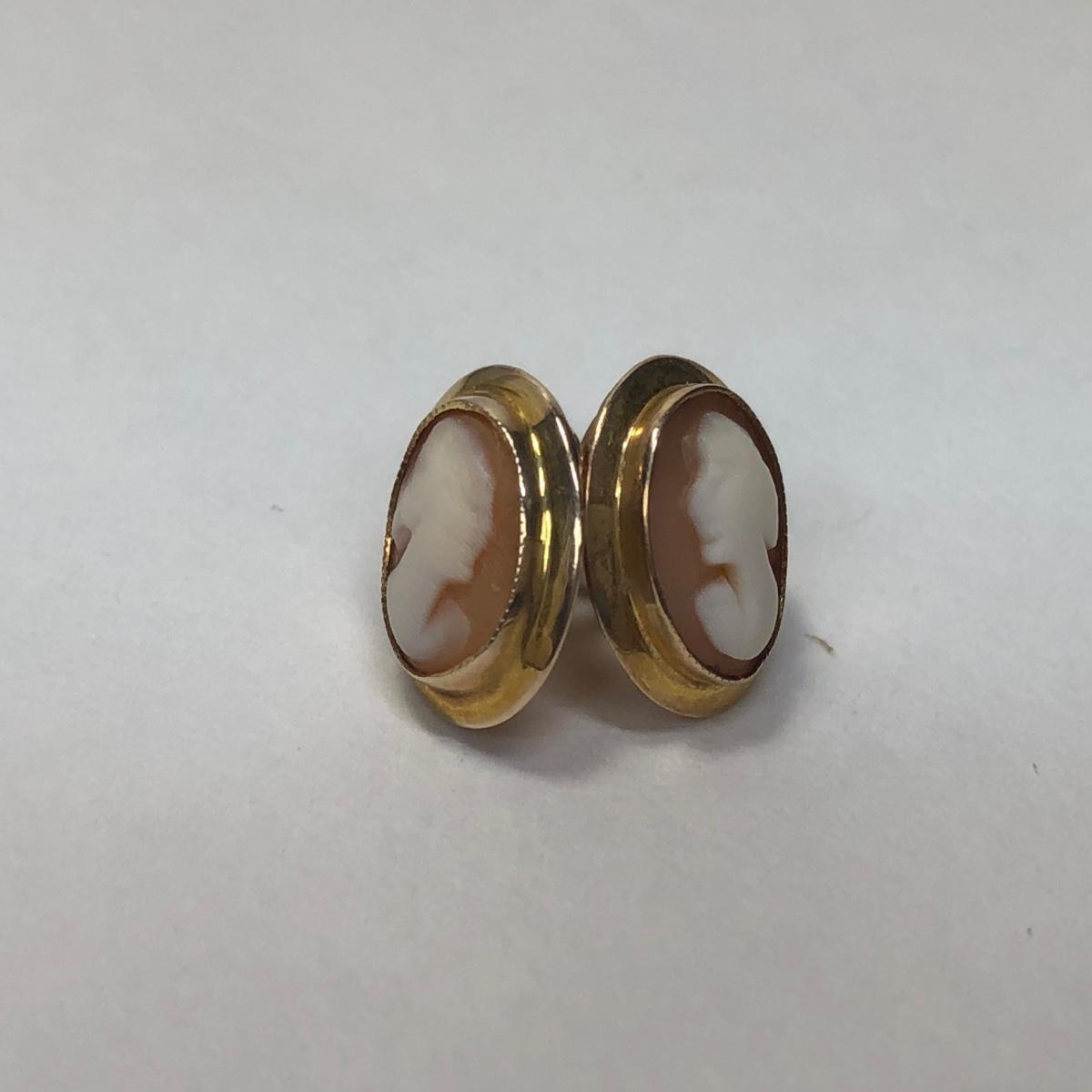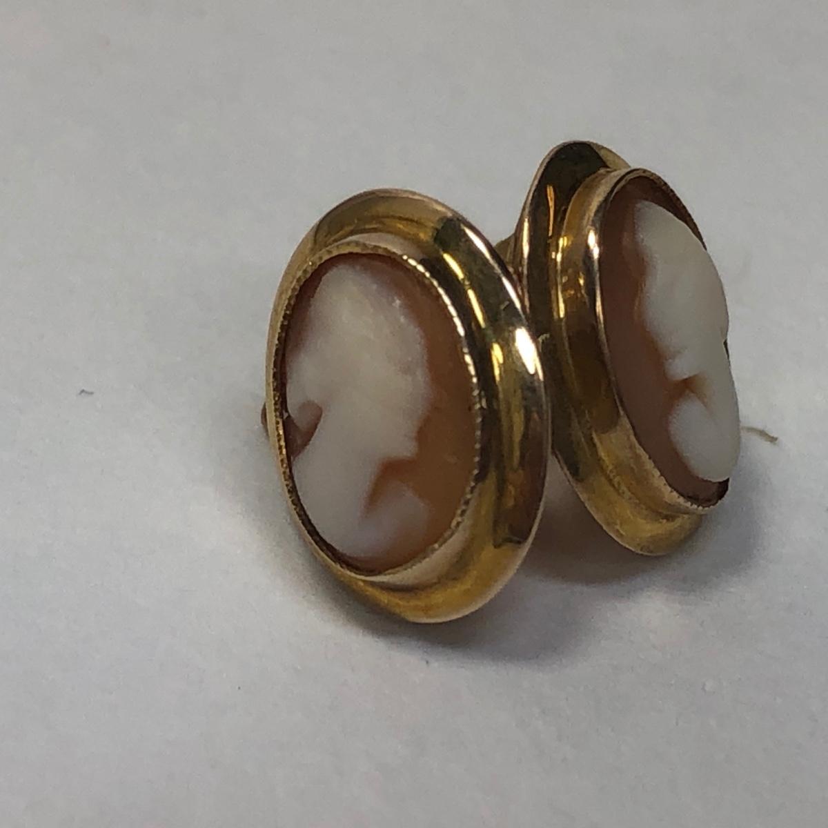 LOT 301: Antique/Vintage 10K Gold Cameo Post Pierced Screwback Earrings Marked BCA (tw: 1.5g)